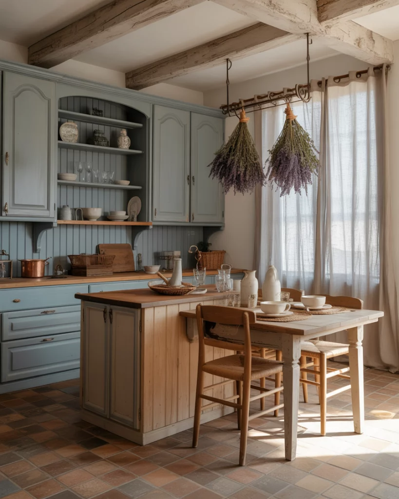 Many designers, including the team at House & Garden UK, love using matte black iron to ground softer palettes. In French country spaces, black introduces structure to a bedroom, open-shelf kitchen, or small bathroom without feeling heavy. I’ve watched hesitant homeowners embrace this idea once they realize how just a few details—curtain rods, lantern pendants, cabinet hardware—add instant depth. It’s a subtle nod to old French farmhouses where metalwork aged beautifully over time.