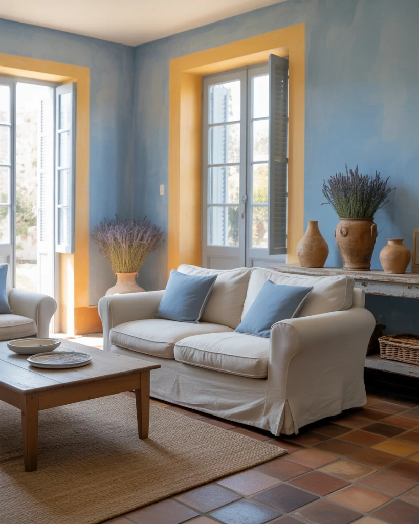 The classic blue and yellow pairing is returning in 2026 with softer gradients and textured natural fibers. This combination works beautifully in a living room, an English cottage setting, or a bright, airy bedroom. When helping a friend redo her small apartment, she was surprised how such traditional colors felt unexpectedly youthful. The tones feel like summer light filtered through old village shutters—warm, inviting, and unmistakably French.