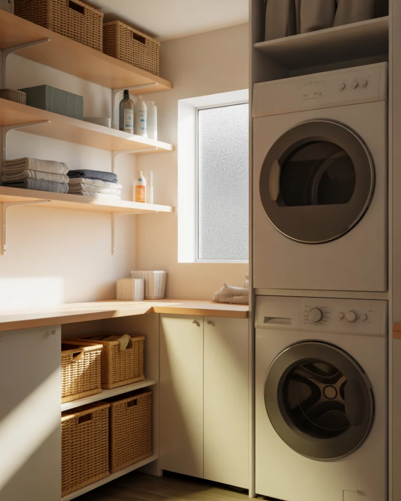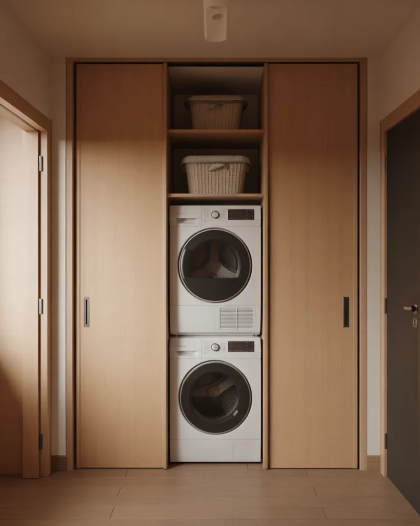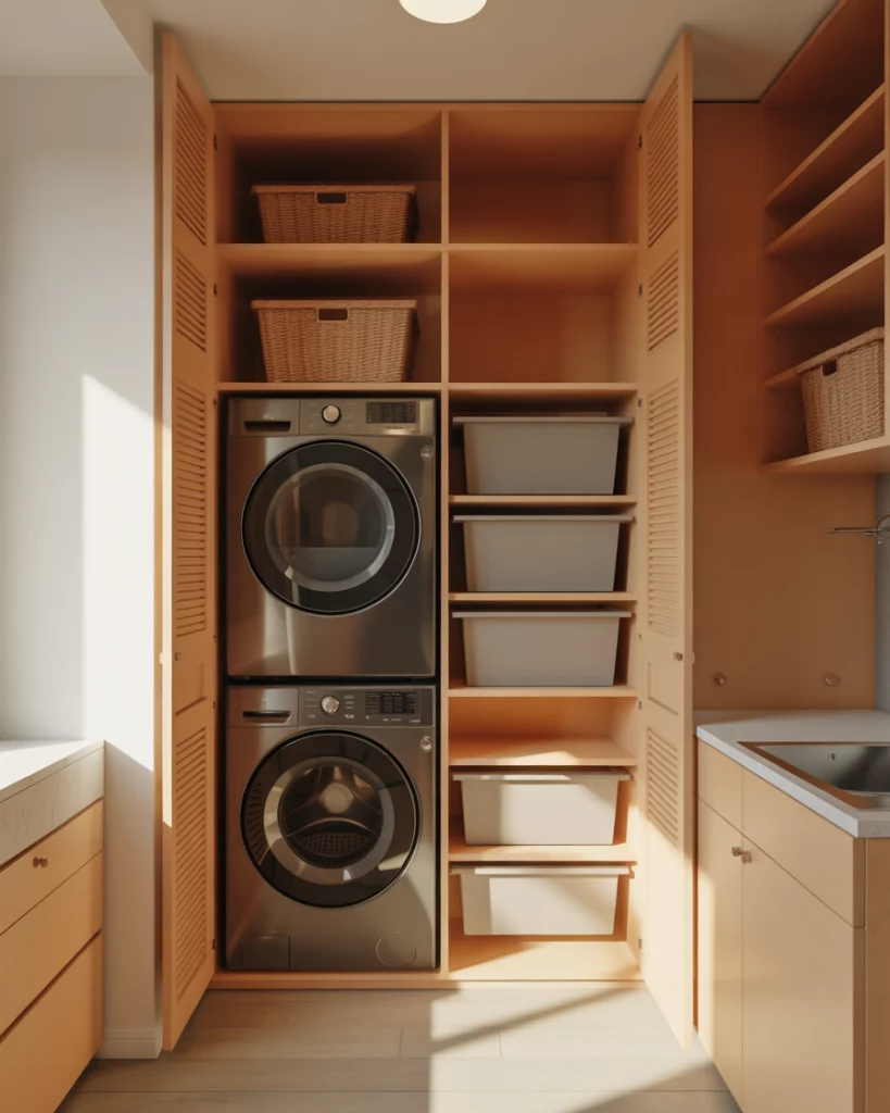 20 Stacked Washer Dryer Rooms With Smart Storage