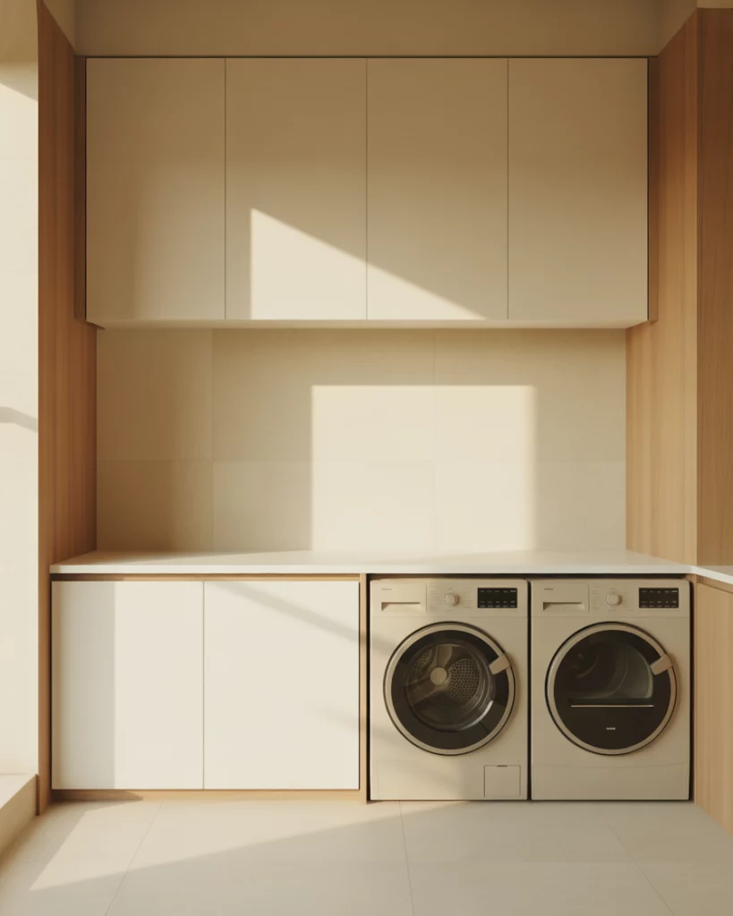 The focus of a laundry room in 2026 will be on restraint. Visual clutter is eliminated by flat-paneled cabinetry, integrated appliances, and subtle textures. These spaces are most often designed as a calm transitional room with a dual purpose to make the busiest sections of the home more functional. Material continuity is a point of focus. Bringing in adjacent room finishes and materials into the laundry fosters a sense of cohesion, rather than isolation.