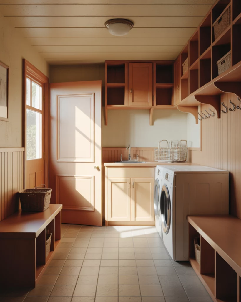 Combining a laundry room with a mudroom reflects how families actually use their homes. In 2026, these rooms are designed to handle shoes, coats, and loads of laundry in one organized flow. Durable surfaces and layered storage keep everything in check. American lifestyle patterns drive this trend, especially in regions with distinct seasons. Having laundry near the home’s main entry helps manage wet coats, sports gear, and daily messes before they spread.
