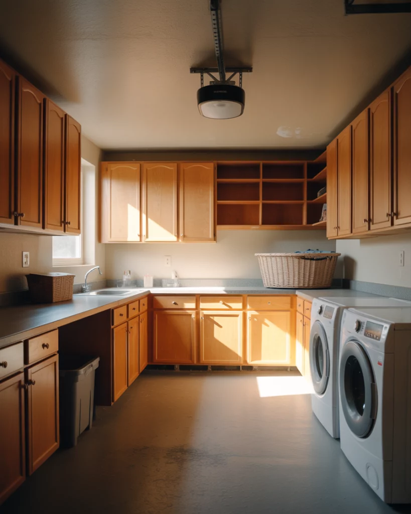 A garage laundry room prioritizes efficiency and resilience. In 2026, added storage systems make these spaces work harder, holding tools, cleaning supplies, and laundry essentials in one place. Expert advice highlights choosing moisture-resistant materials. This prevents warping and extends the life of cabinetry in temperature-variable environments.