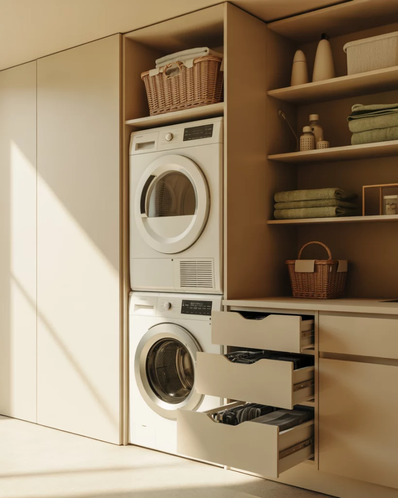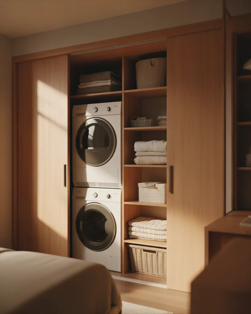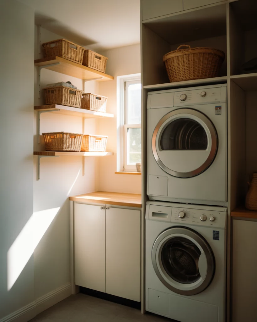 20 Stacked Washer Dryer Rooms With Smart Storage
