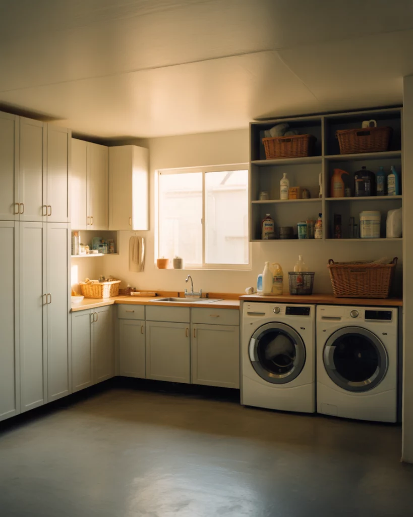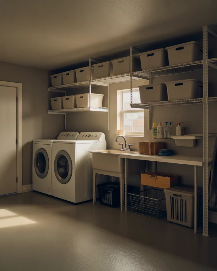 A garage laundry room prioritizes efficiency and resilience. In 2026, added storage systems make these spaces work harder, holding tools, cleaning supplies, and laundry essentials in one place. Expert advice highlights choosing moisture-resistant materials. This prevents warping and extends the life of cabinetry in temperature-variable environments.