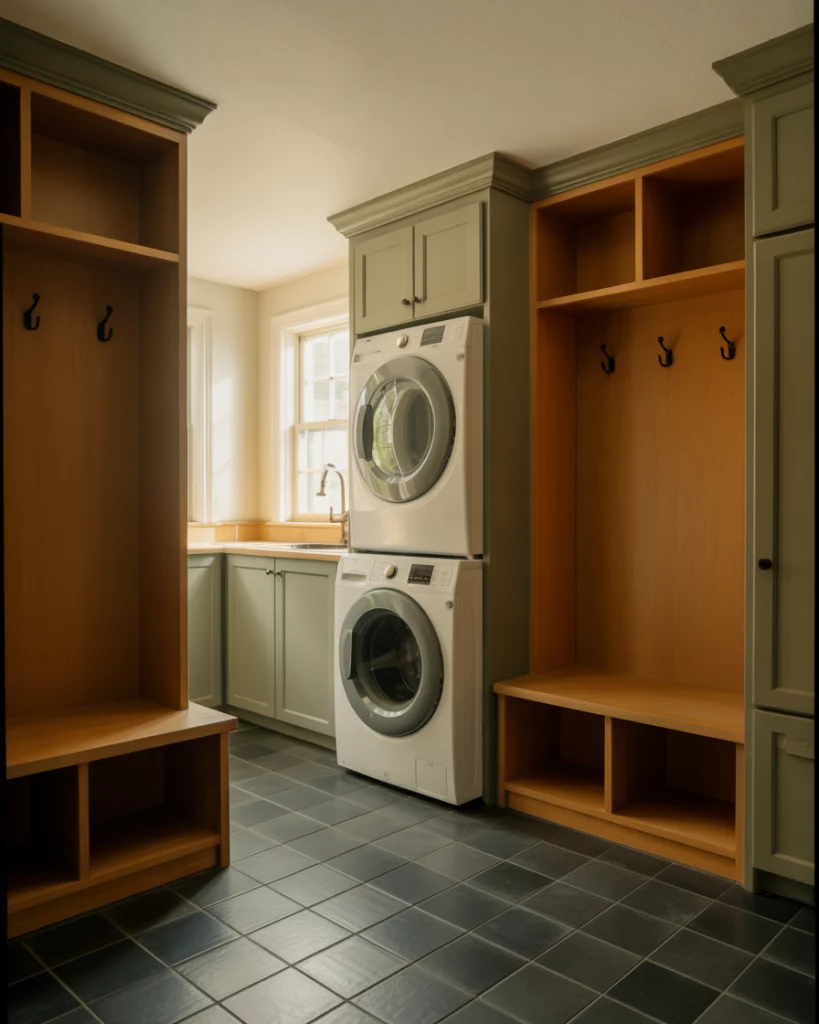 Combining a laundry room with a mudroom reflects how families actually use their homes. In 2026, these rooms are designed to handle shoes, coats, and loads of laundry in one organized flow. Durable surfaces and layered storage keep everything in check. American lifestyle patterns drive this trend, especially in regions with distinct seasons. Having laundry near the home’s main entry helps manage wet coats, sports gear, and daily messes before they spread.