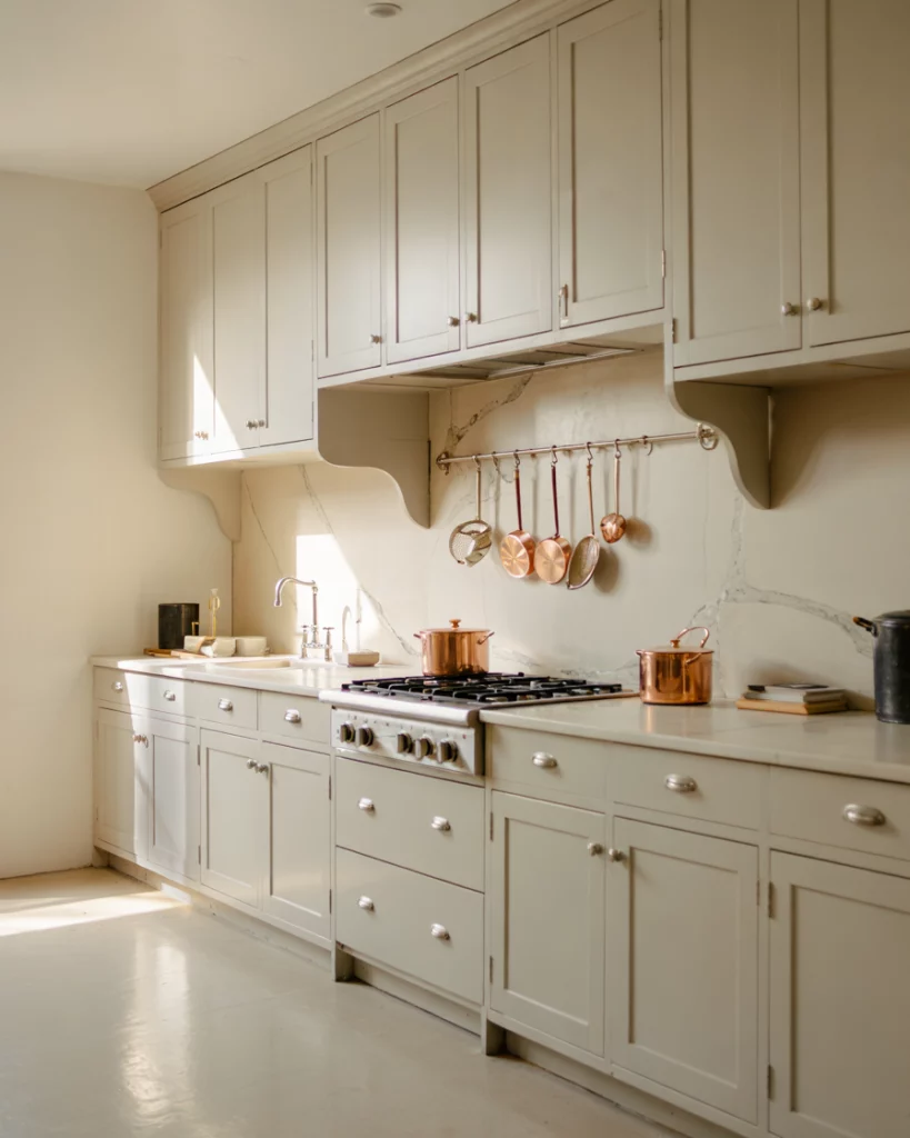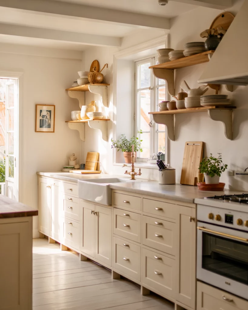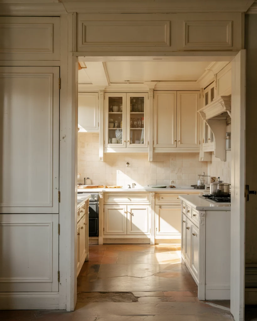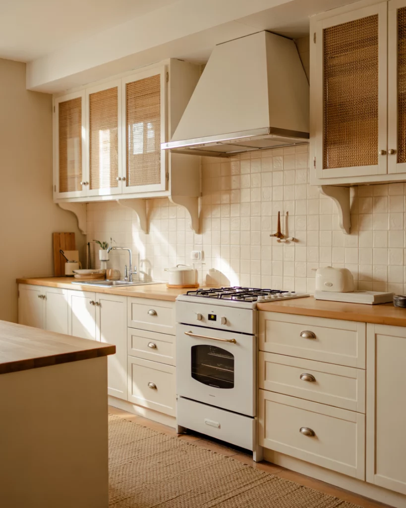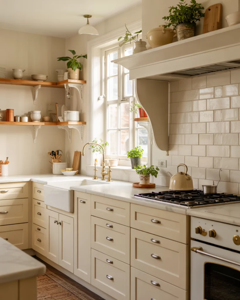 White kitchens gain charm from thoughtful classic trim, from crown molding to paneled all-white fronts. Introducing small touches of cabinet backsplash ideas, tile, or simple decor keeps the space from feeling too formal. The result is timeless, clean, and warmly traditional.
