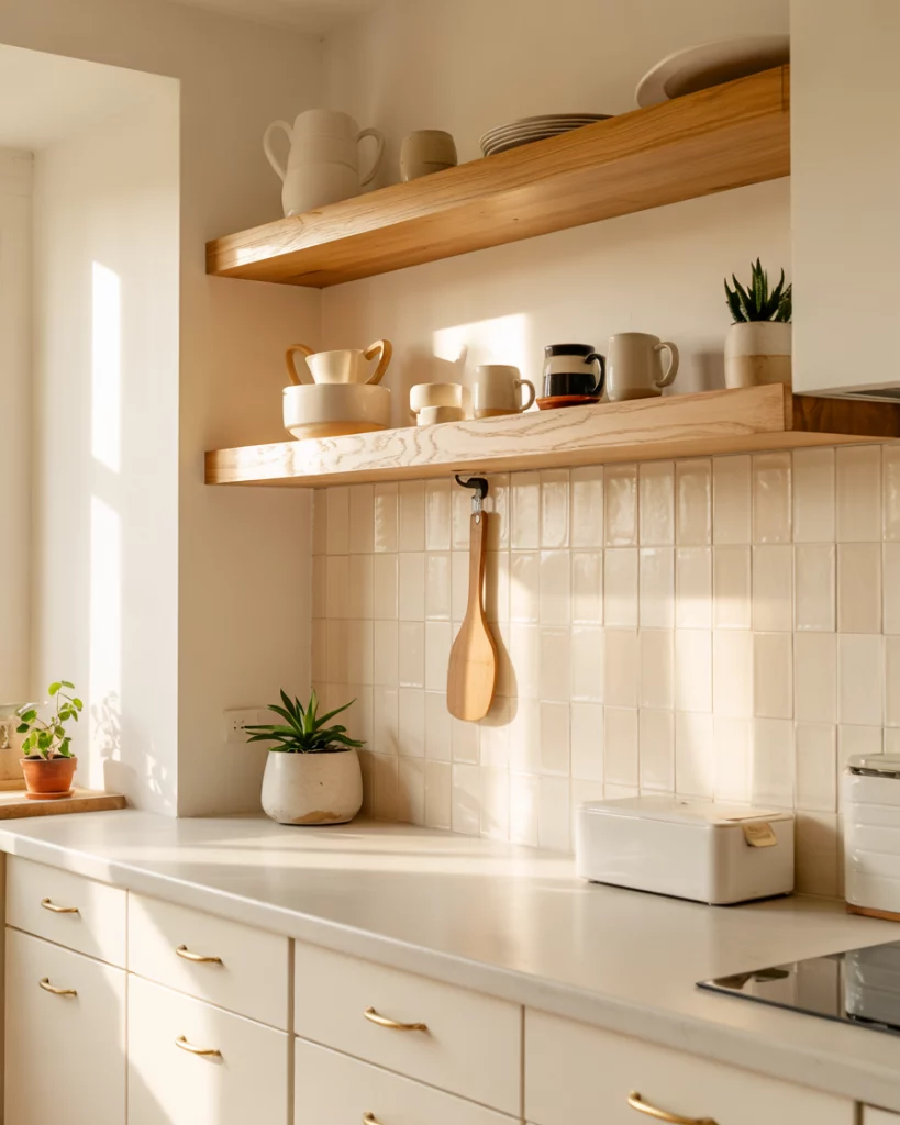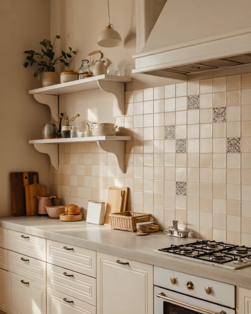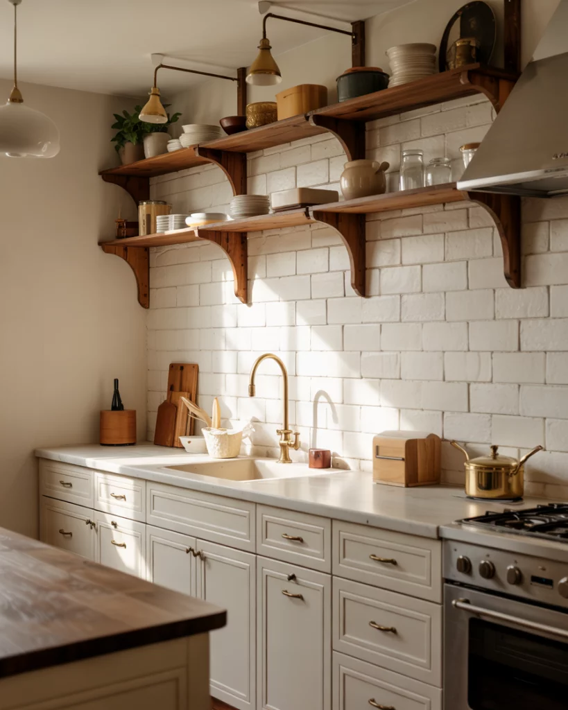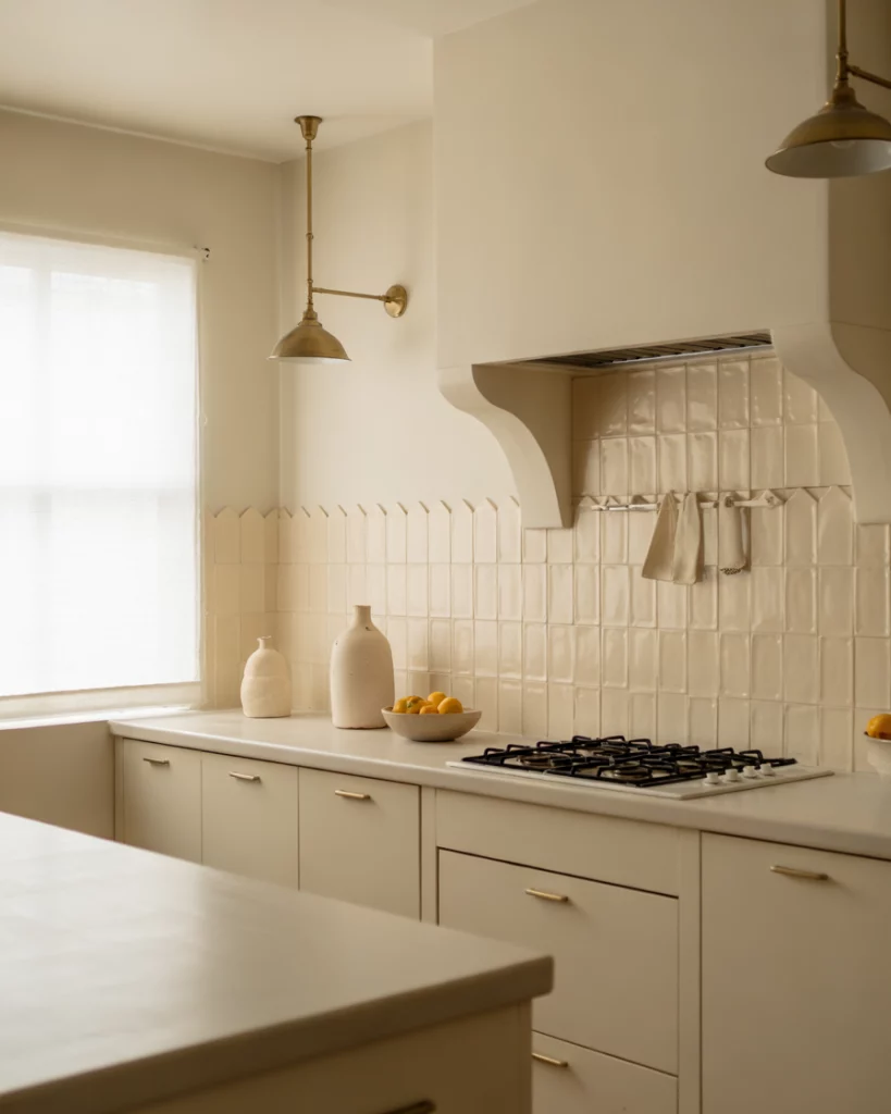 A white kitchen becomes memorable when you add unexpected backsplash ideas like scallops, diamonds, or elongated rectangles. Paired with understated cabinet ideas and gentle decor, these tile shapes can energize the space without overwhelming it. The effect is crisp but subtly playful.