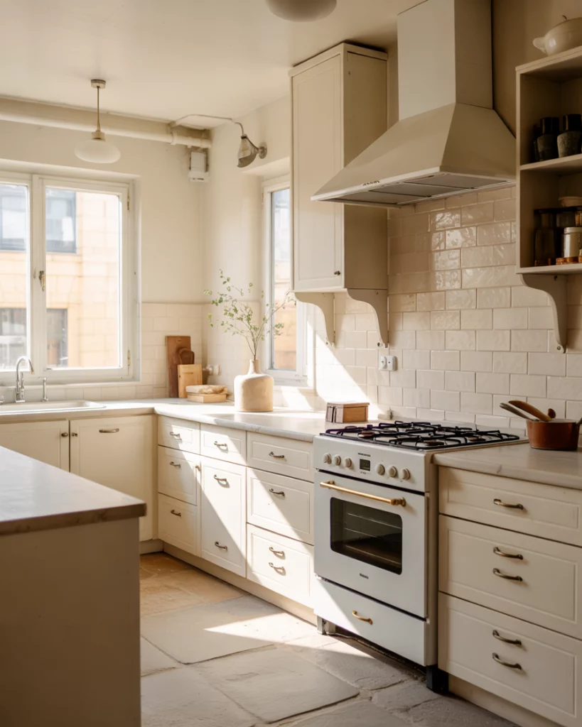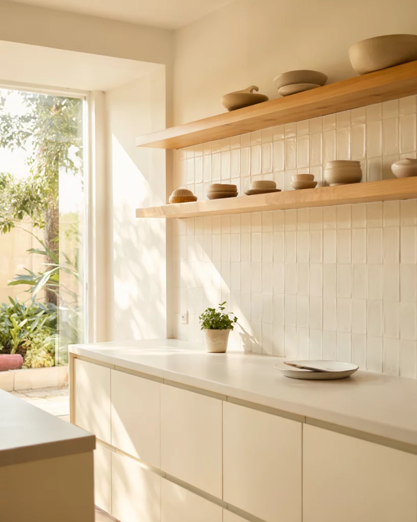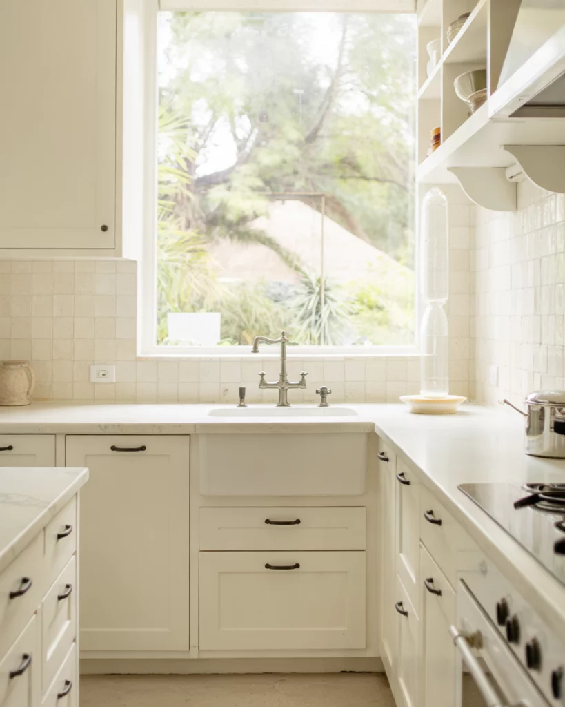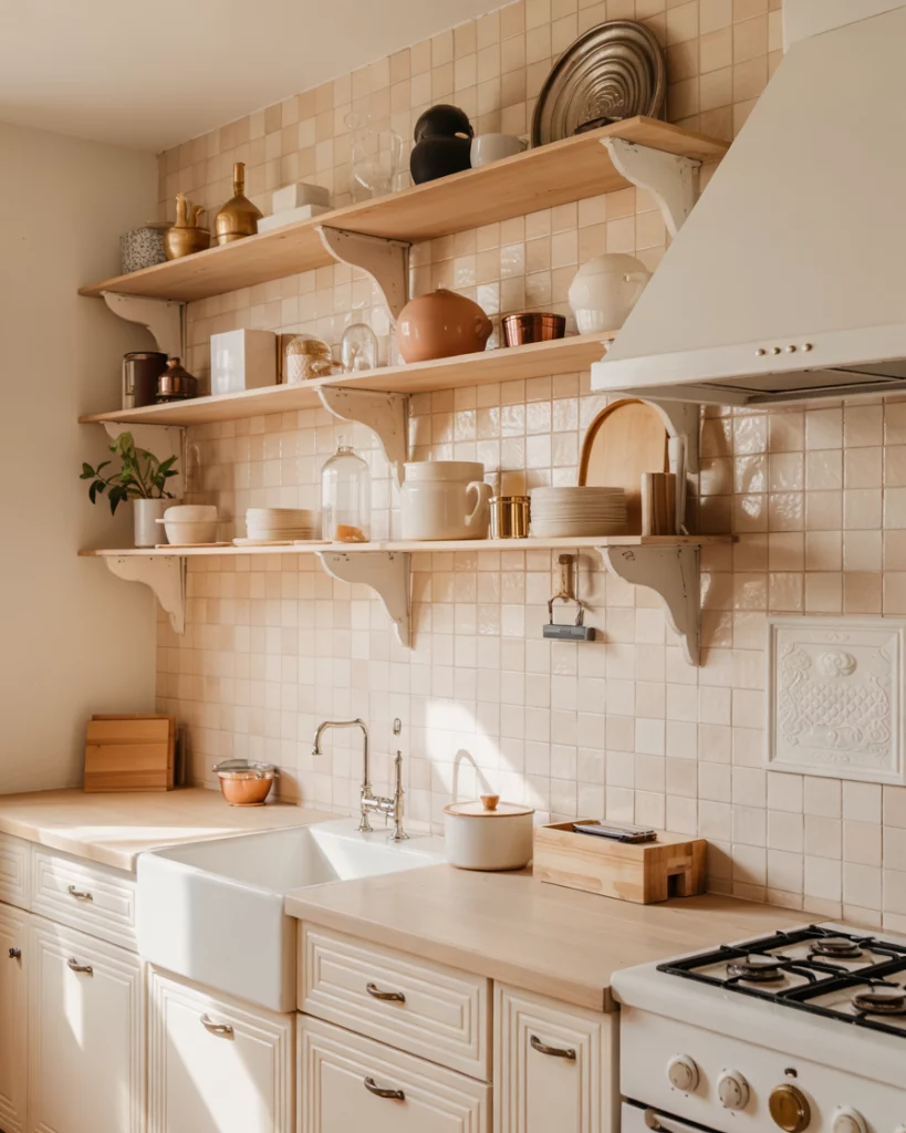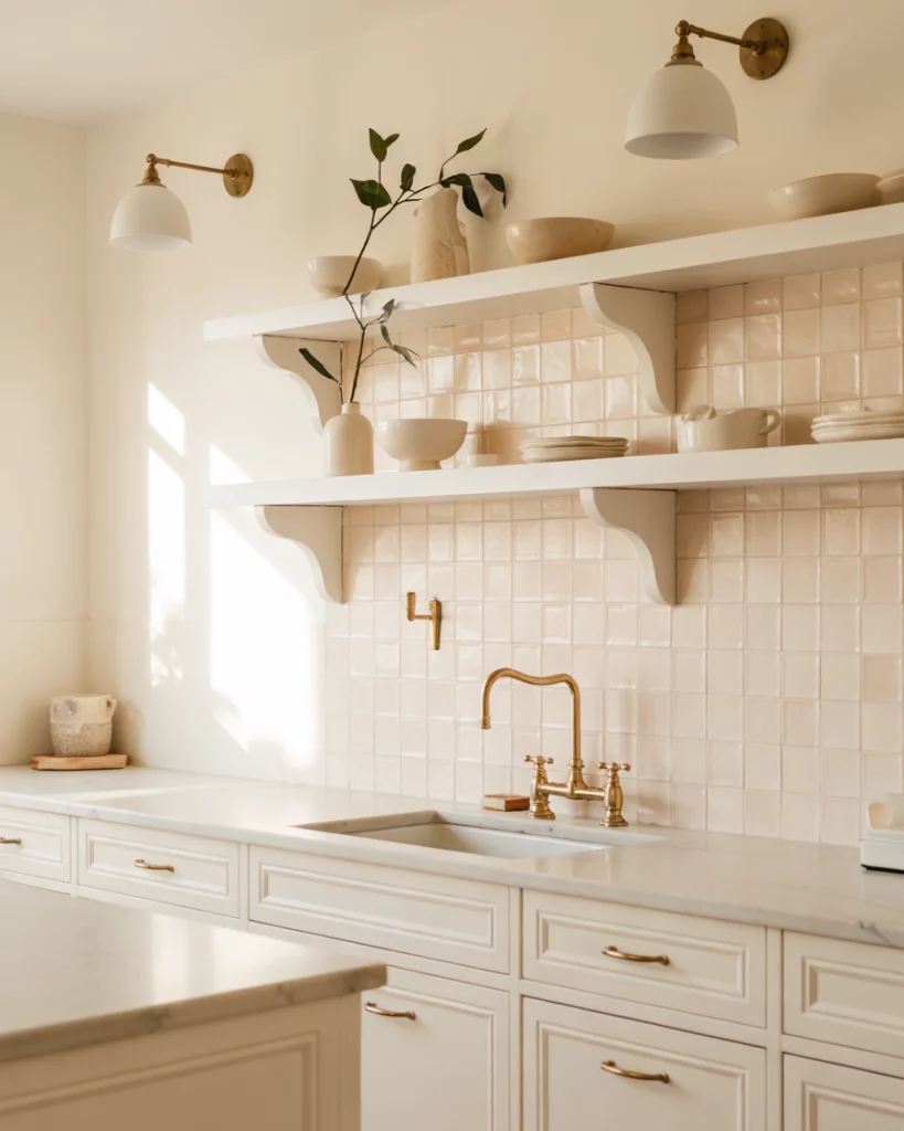 A white kitchen becomes memorable when you add unexpected backsplash ideas like scallops, diamonds, or elongated rectangles. Paired with understated cabinet ideas and gentle decor, these tile shapes can energize the space without overwhelming it. The effect is crisp but subtly playful.