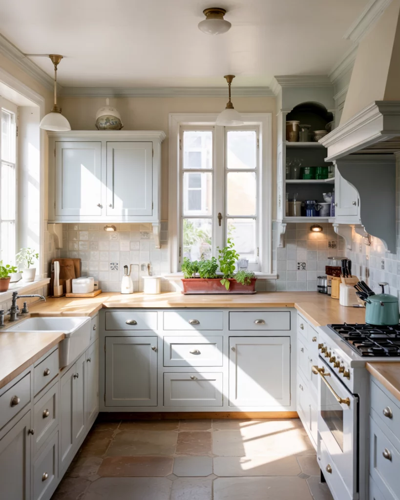 If you want a soft pop of color, subtle blue and pale tones blend beautifully into white kitchens without demanding attention. Even a small stripe of backsplash ideas tile or muted paint near the island creates a breezy atmosphere. The palette stays bright but feels more personal than pure white alone.