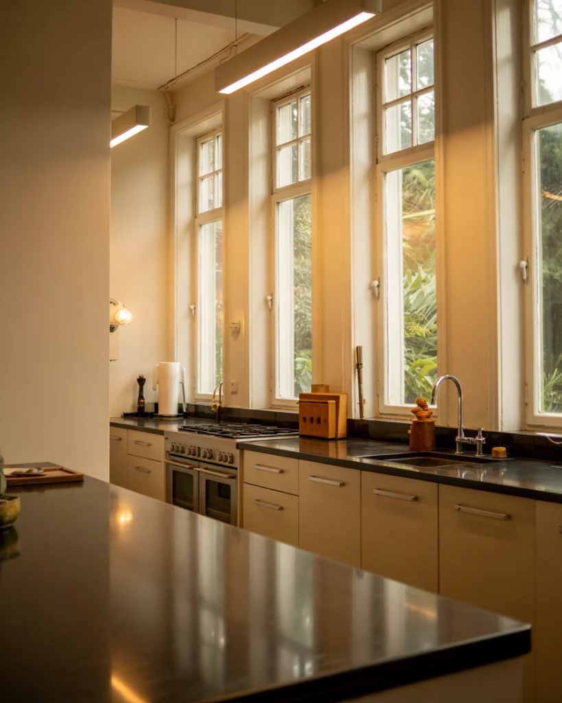 The whites in your kitchen seem much more modern and fresh when paired with minimalist hardware, particularly black hardware. These are matched quite well with minimalist cabinetry and light, slightly veined surfaces. This keeps everything quite calm and clutter-free.