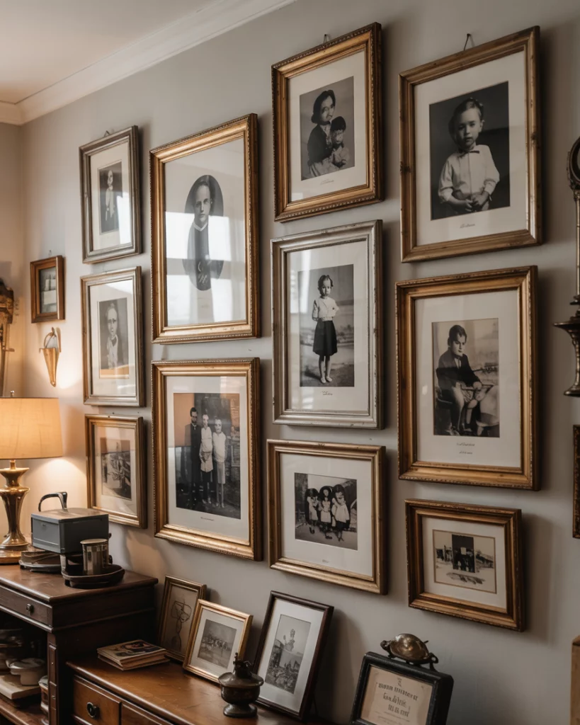 One timeless route is to lean into the charm of vintage-inspired pieces: black-and-white family photos, antique maps, retro typography, all in a cohesive frame palette. This look suits a cozy living room or elegant bedroom wall where nostalgia meets design. It works especially well when you include your family heritage images and display them in a way that feels curated rather than cluttered. Trend reports emphasise how buyers in 2026 are drawn to personal, meaningful art pieces for gallery walls.