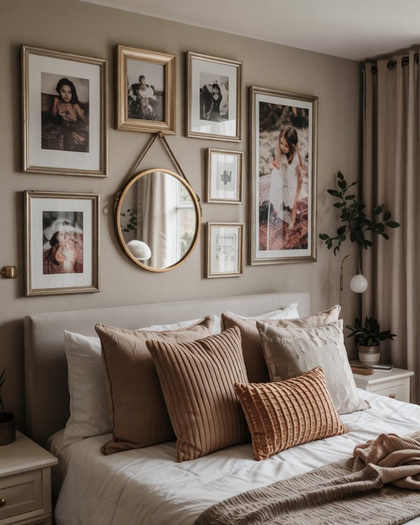 23. Cozy Bedroom Gallery with Mirrors and Family Photos