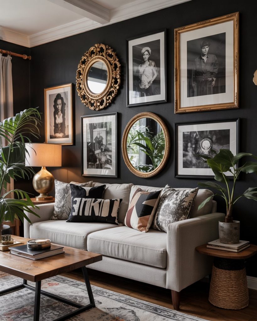 8. Gothic-Chic Dark Gallery Wall for Living Room