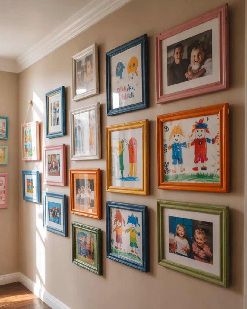 21. Creative Kids’ Art Gallery Wall in the Hallway