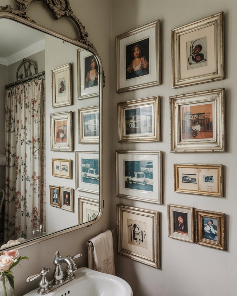 9. Bathroom Gallery Wall with Mirrors & Personal Photos