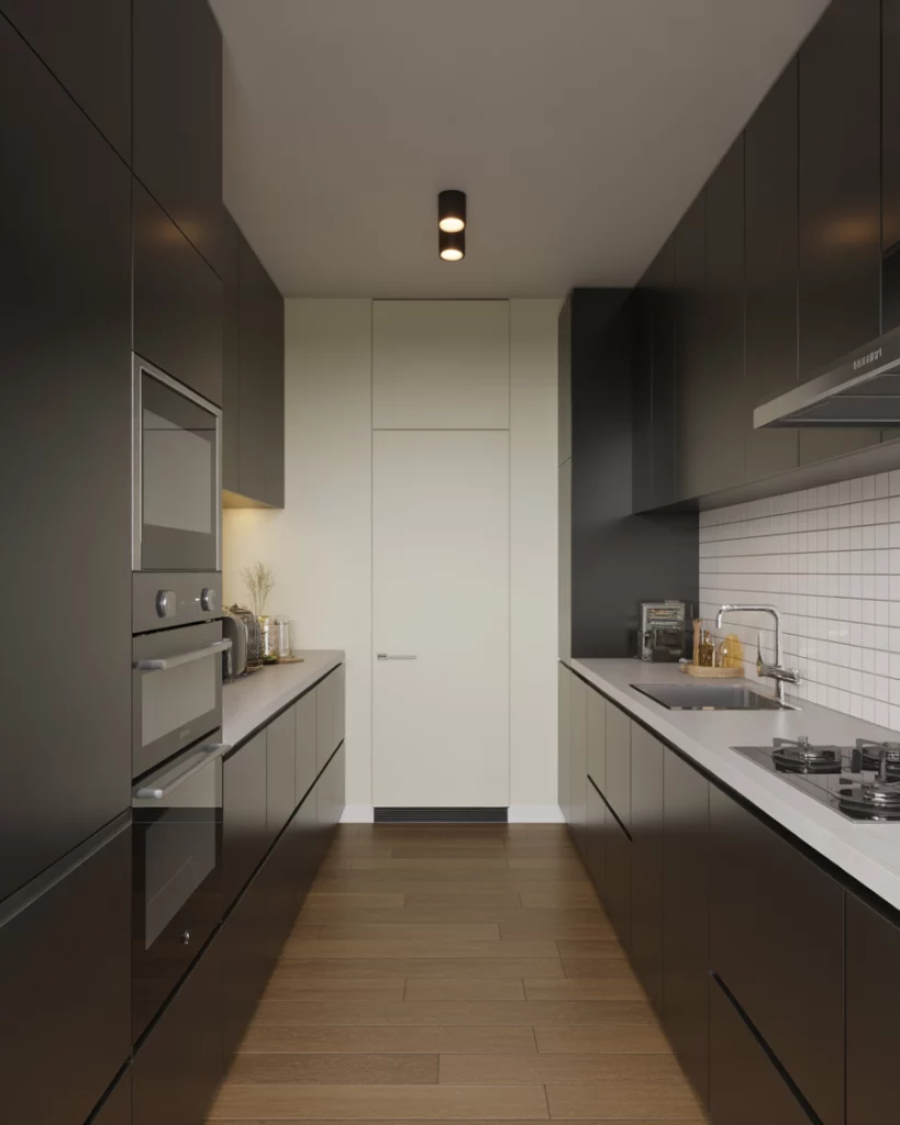 Strategic touches of black—from fixtures to stools—add contrast to any galley makeover. This palette suits Scandinavian, loft-style, and minimalist interiors and pairs well with decor that leans sleek rather than ornate. I’ve seen even hesitant homeowners fall in love once they realize black can feel crisp, not harsh.