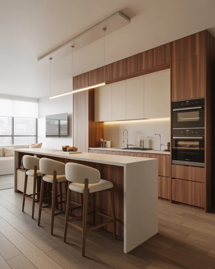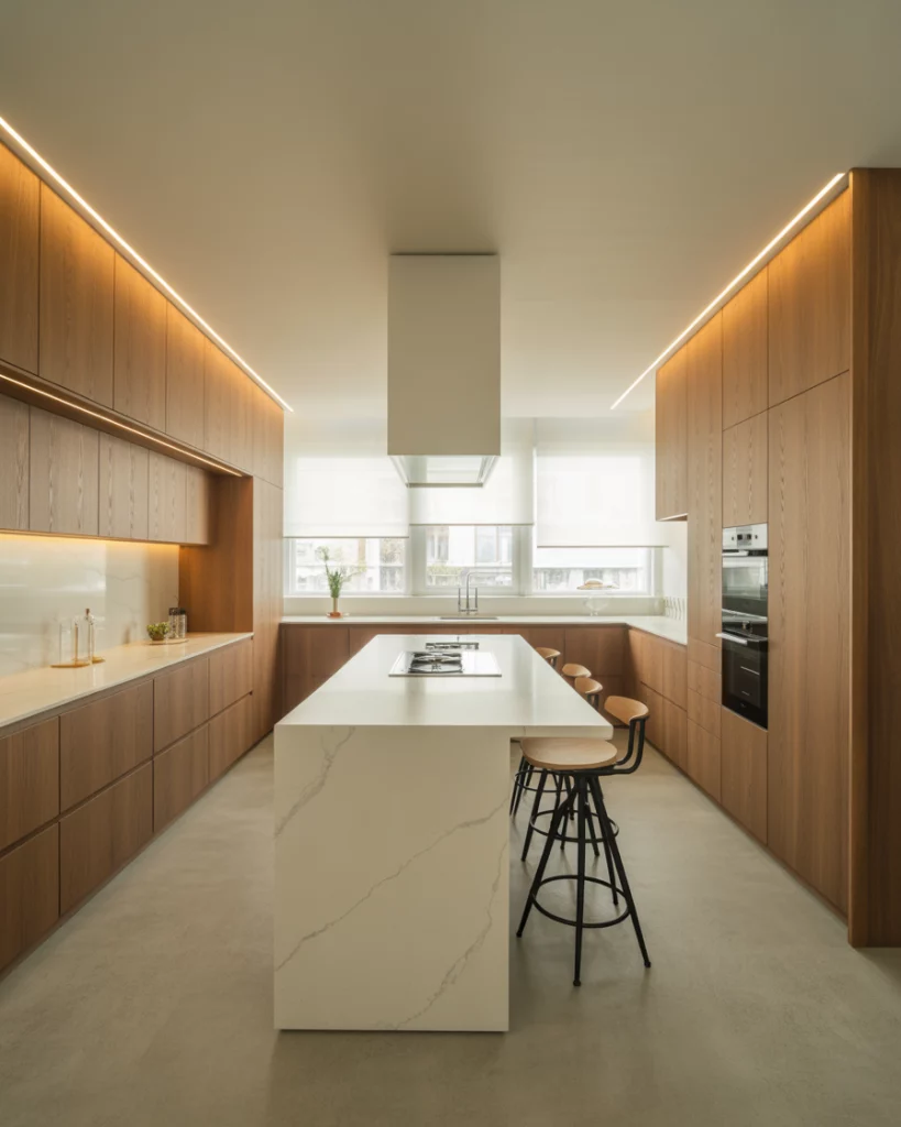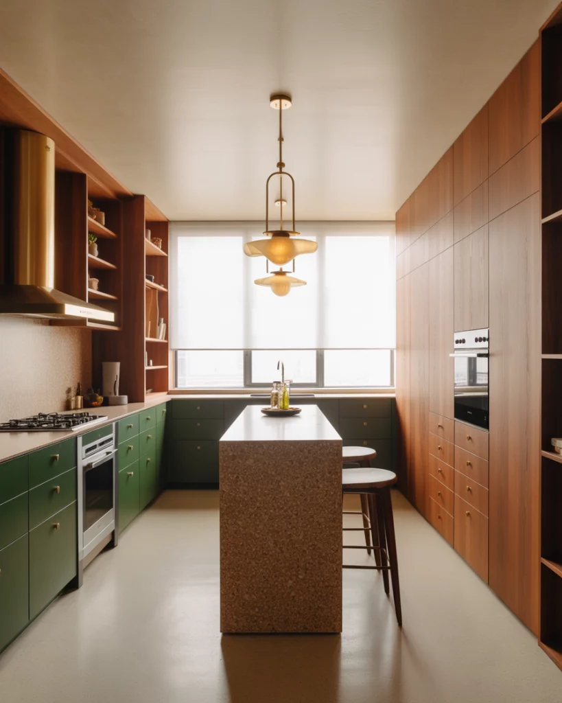 A wide galley kitchen softens the tight feel often associated with this style, giving families room to move. Placing appliances on opposite sides supports a smooth design flow, making shared cooking less chaotic. These floor plans often suit townhomes or large suburban remodels. I’ve seen families instantly reconnect over dinner simply by widening the walkway.