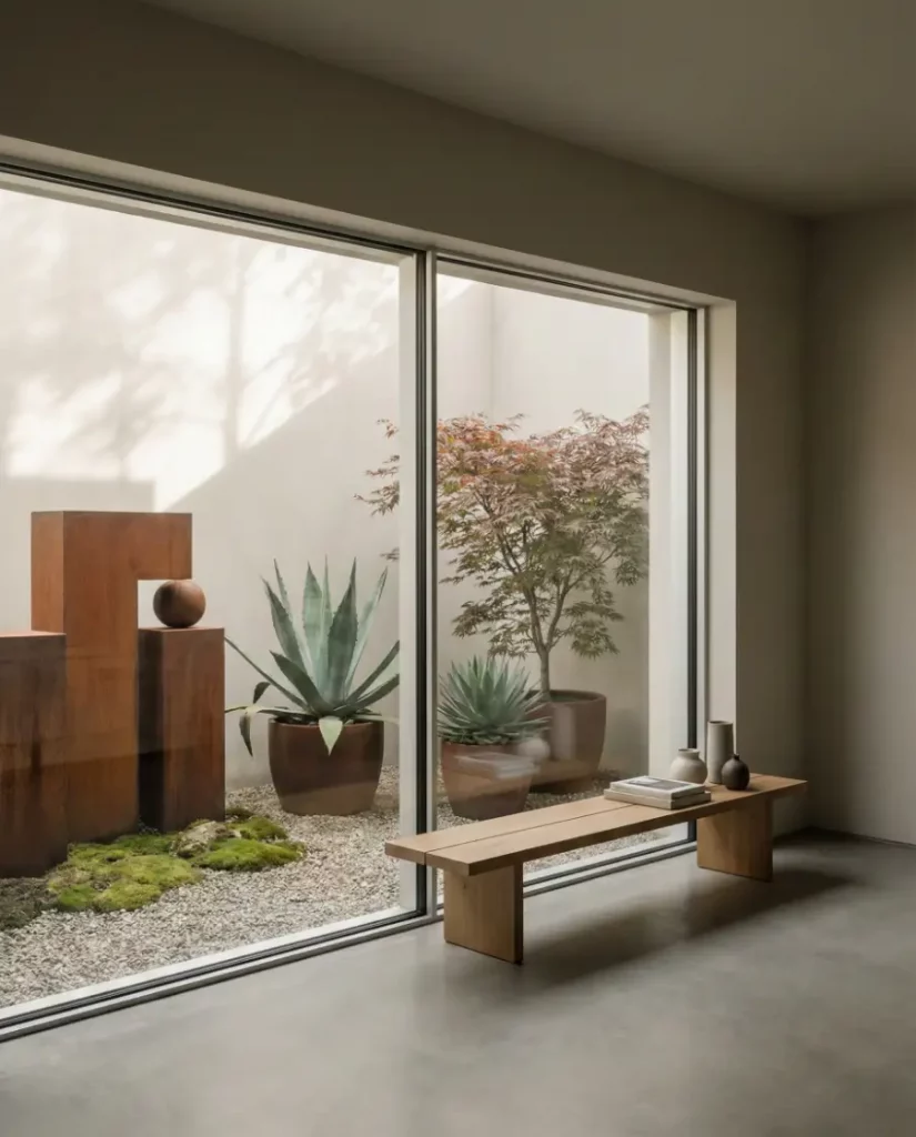 Inspiration zone, this garden prioritizes mood over function. Sculptural plants, statement pots, and curated views make it a place to think, sketch, or simply pause.