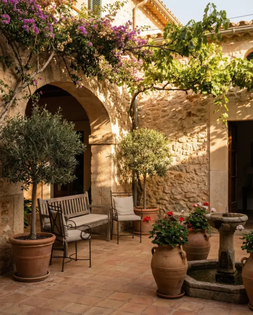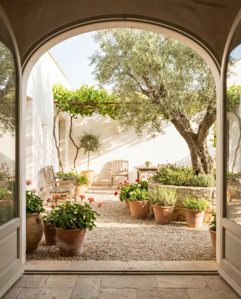 Mediterranean gardens are gaining traction across the U.S., especially in warmer states. Terracotta pots, olive trees, and gravel ground covers define this Mediterranean look, while shaded seating turns any Outdoor area into a social hub. It’s sun-loving, drought-aware, and endlessly relaxed.