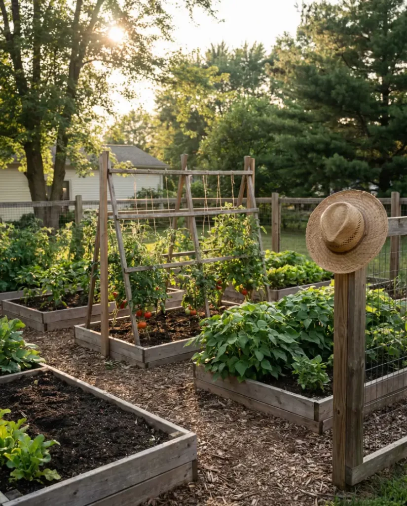 This beginner-friendly setup encourages people to grow a garden with confidence. Simple beds, easy crops, and clear spacing reduce overwhelm while delivering quick rewards.