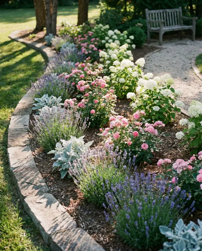 This romantic backyard leans into Cottage charm with loose borders, layered blooms, and winding paths. It’s perfect for a Backyard that’s meant to feel collected over time rather than designed all at once. Roses mingle with perennials, creating a soft, slightly wild look that still feels intentional.