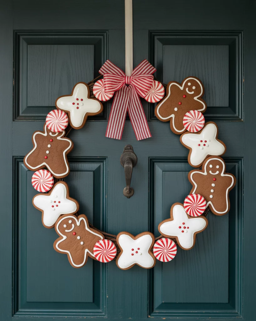 17. Peppermint and Gingerbread Wreath on Your Front Door.