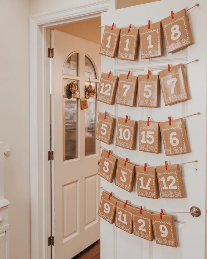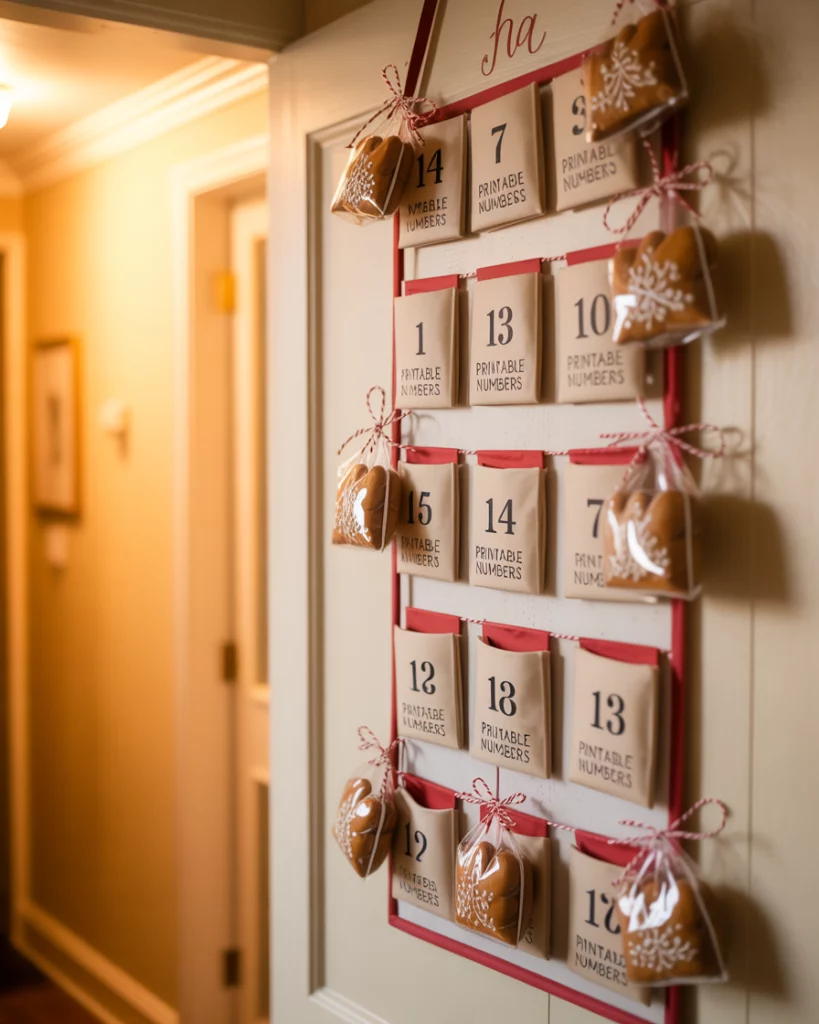 Make a gingerbread-themed advent or countdown calendar out of a blank wall in the hallway. Write printable numbers on cookie-shaped bags or boxes, and put them on a hanging display, created with ribbon or garland. It is a fun and simple project that creates anticipation each day until Christmas.