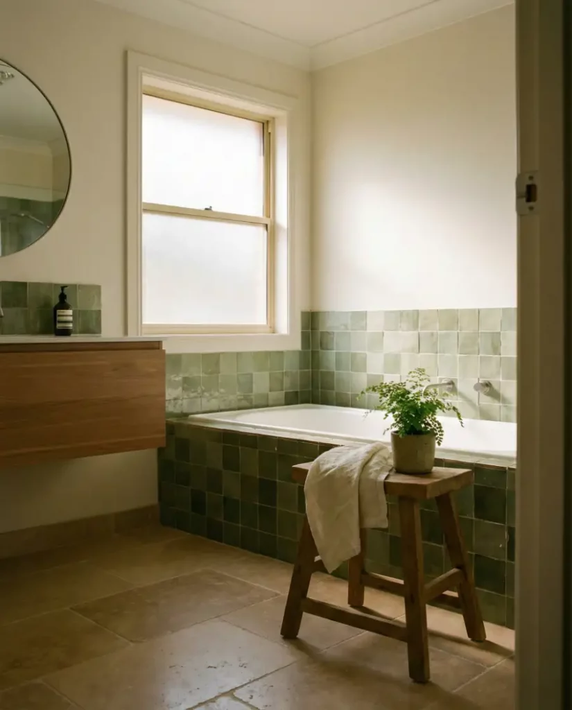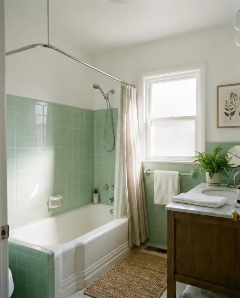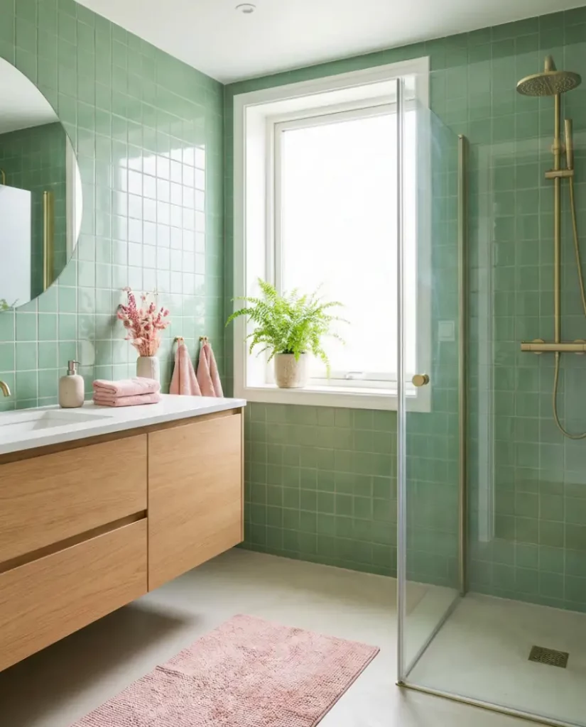 Sometimes it’s the smallest touches that matter most. Soft green tile used as decor—in niches, backsplashes, or trim—adds character without renovation overload. These subtle choices blend easily into existing layouts.