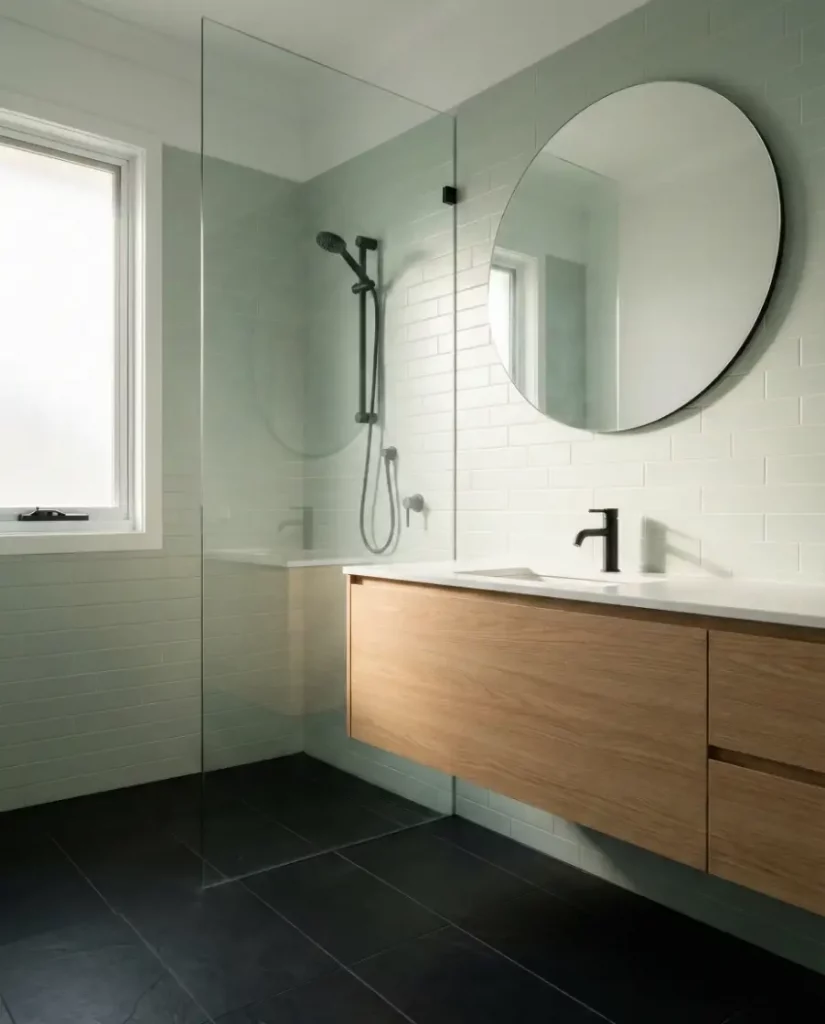 Mint green tile brings a crisp, modern energy that feels youthful without being juvenile. Often paired with streamlined design elements and sleek floor finishes, mint works well in minimalist layouts. In contemporary Mint-inspired baths, the color reads fresh and architectural rather than sweet.