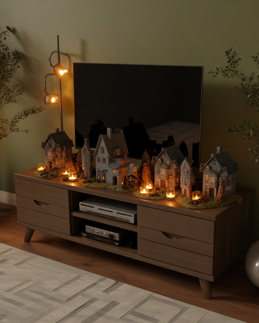 21. Indoor Simple TV Stand Haunted Village