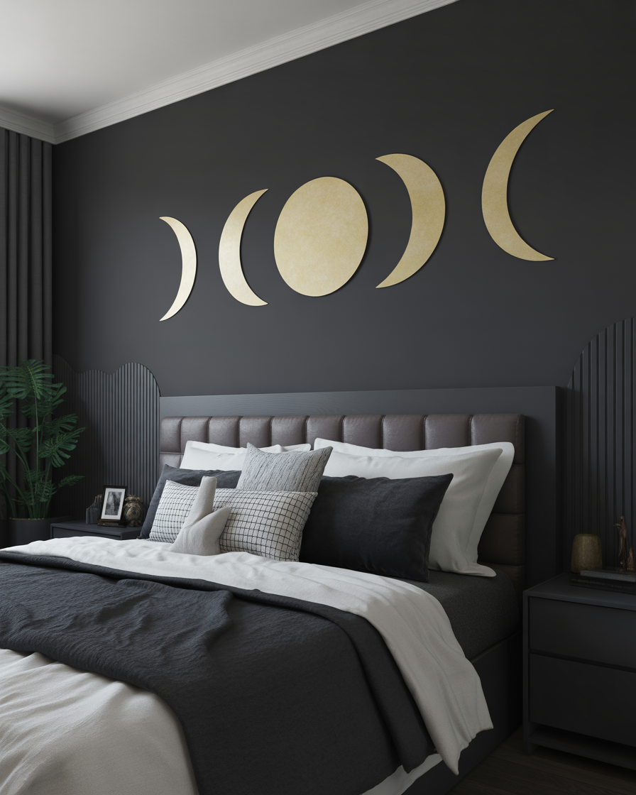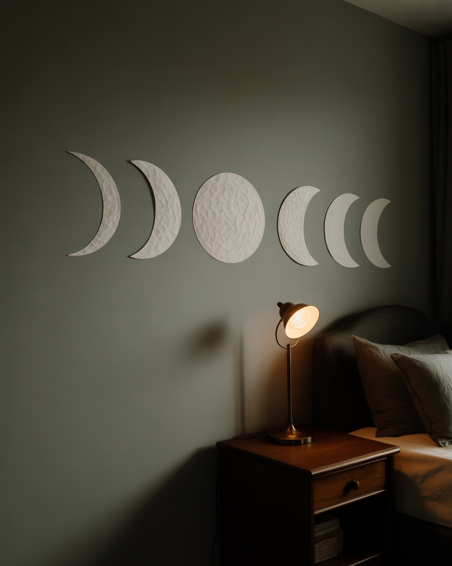 Use paper cutouts to create the phases of the moon and hang them across a wall. The aesthetic diy works on aesthetic dark or soft pink palettes depending on how you prefer your color schemes to be. It’s a simple way to fill empty wall space with something striking.