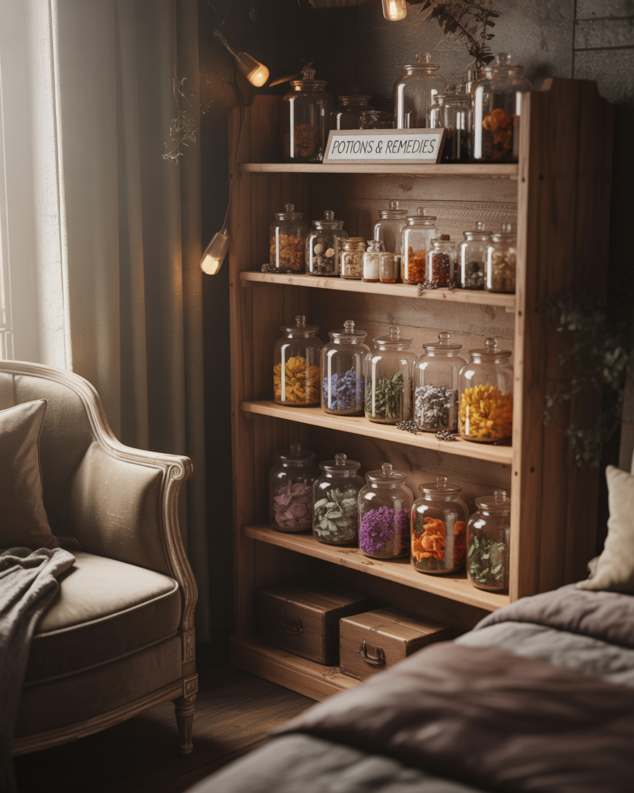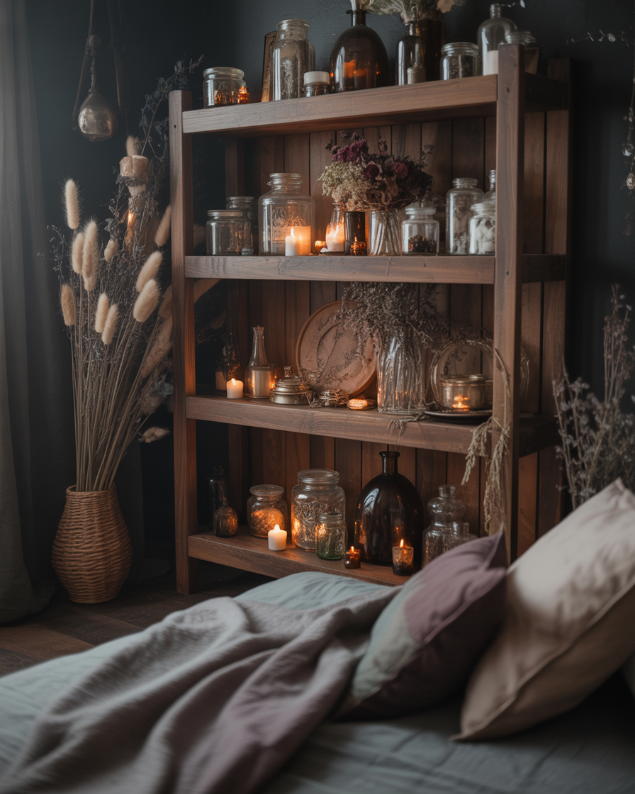 Incorporate a rustic touch by creating a witch’s apothecary shelf in your bedroom. Take advantage of used wood in shelving and pitch glass jars with water, herbs and trifles. Add labels in vintage fonts for authenticity. This is one of the easiest ideas diy that makes a big visual impact while keeping things budget-friendly.