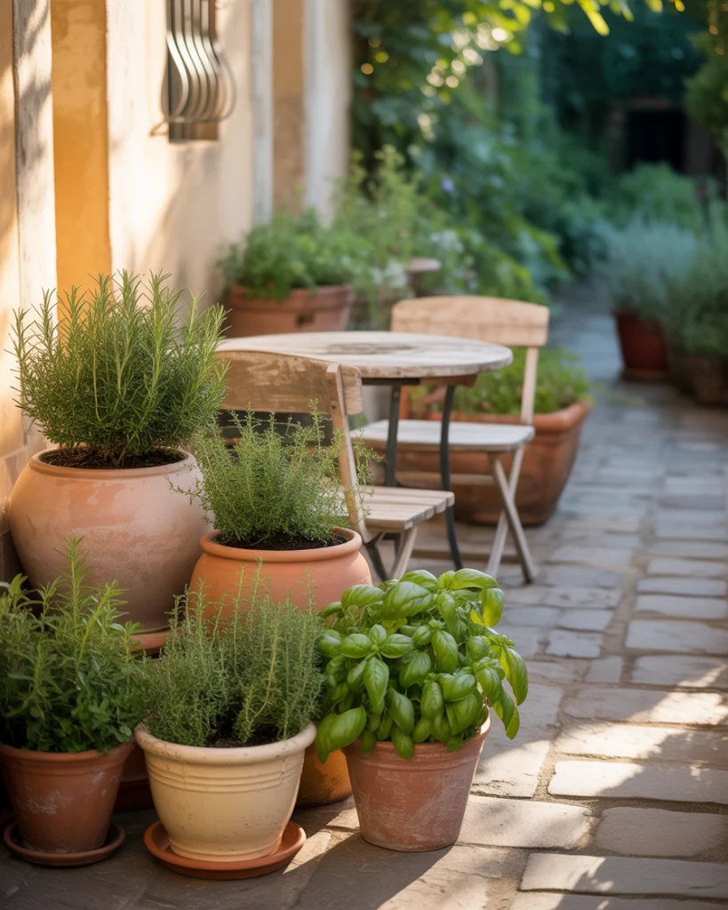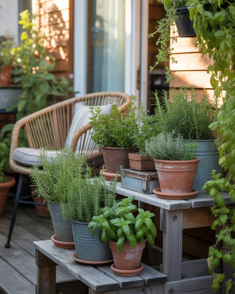 Use hanging baskets on a covered patio to grow herbs that spill beautifully over the edges. This keeps them safe to pets and the space smells very good. My aunt uses this method for trailing thyme and mint—it turns her patio into a fragrant retreat for morning coffee.
