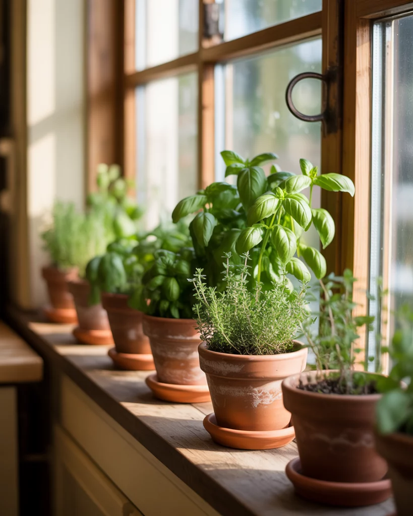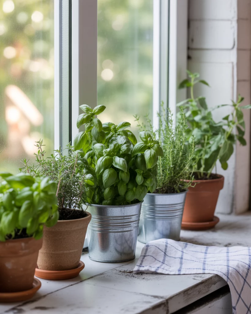 The humble window sill is perfect for growing herbs like basil, thyme, or chives. Store them in terracotta pots or shiny glass containers to make it look style conscious. Every morning I would fill my kitchen sink to make coffee and each day I would cut a few sprigs of mints off my sill garden–tiny habit that started the day cheerfully. It’s proof that even the tiniest home can host an herb garden.