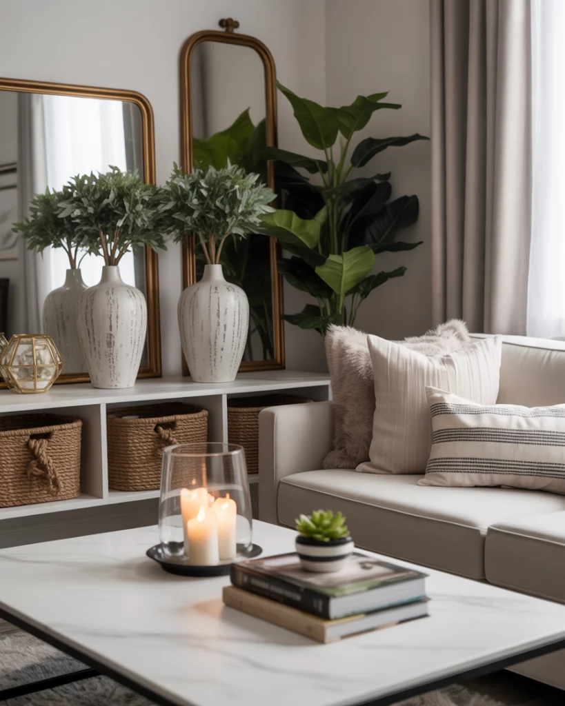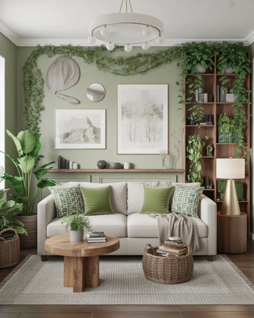 Adding layers with botanical features such as potted trees, vines, and leaf-patterned fabrics helps to bring life to any living room, apartment, and/or small space. Modern designers in 2026 like to combine natural plants with leaf-patterned cushions or art to keep design balanced and interesting. I implemented this design idea within our home after having winter blues, and our home instantly appeared more welcoming because of the added plants.