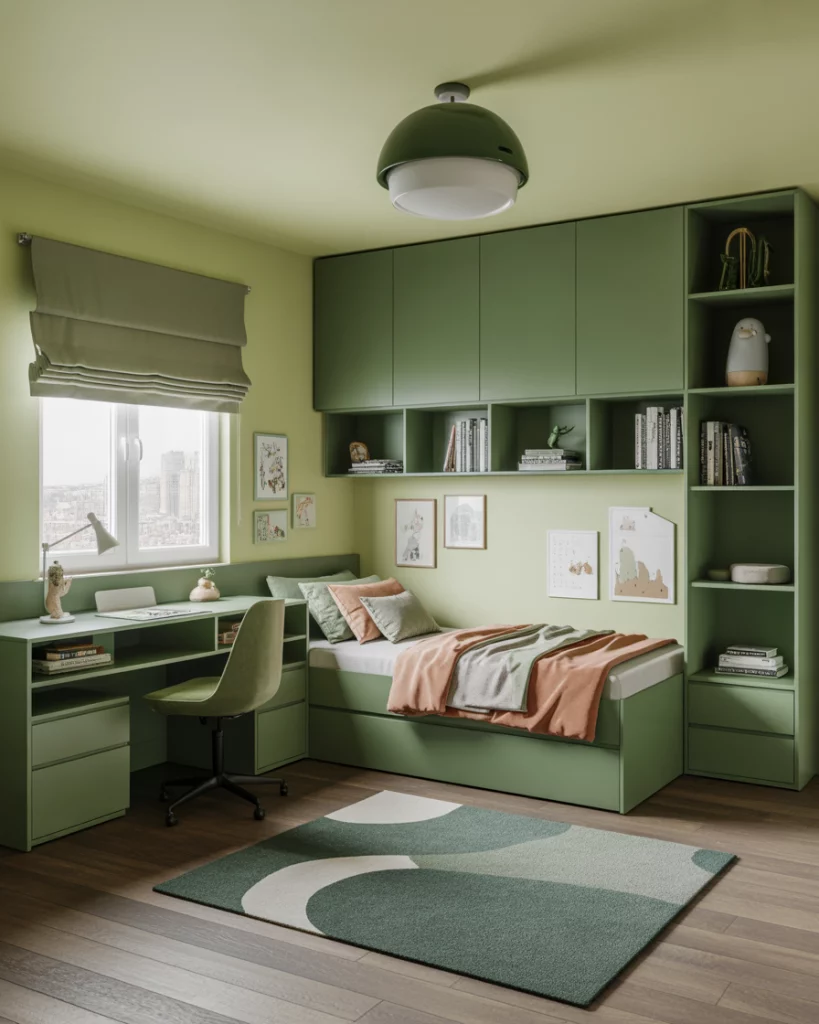 By 2026, older children want autonomy, and green multi-purpose spaces fit the bill. These rooms combine study zones, for boys single bed setups, and even compact seating for friends. Multi-functional furniture—like lofted desks or modular closets—maximizes a small 2 area. Parents admire the maturity, while kids like the freedom to make it their own. For boys or shared boy and girl, the balance of style and practicality works beautifully.