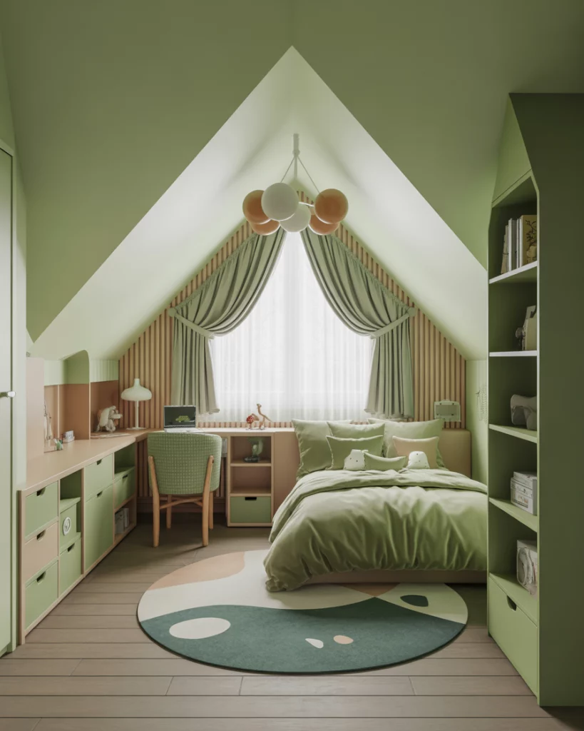 Turning an attic into a child’s bedroom is like creating a secret hideaway. In 2026, families embrace slanted ceilings and quirky corners, turning them into adventurous nooks. For boys theme rooms, parents often choose sports or space designs, while shared boy and girl setups lean on unisex furniture and cozy green textiles. The result is both fun and private, making kids feel like they have their own world inside the home.