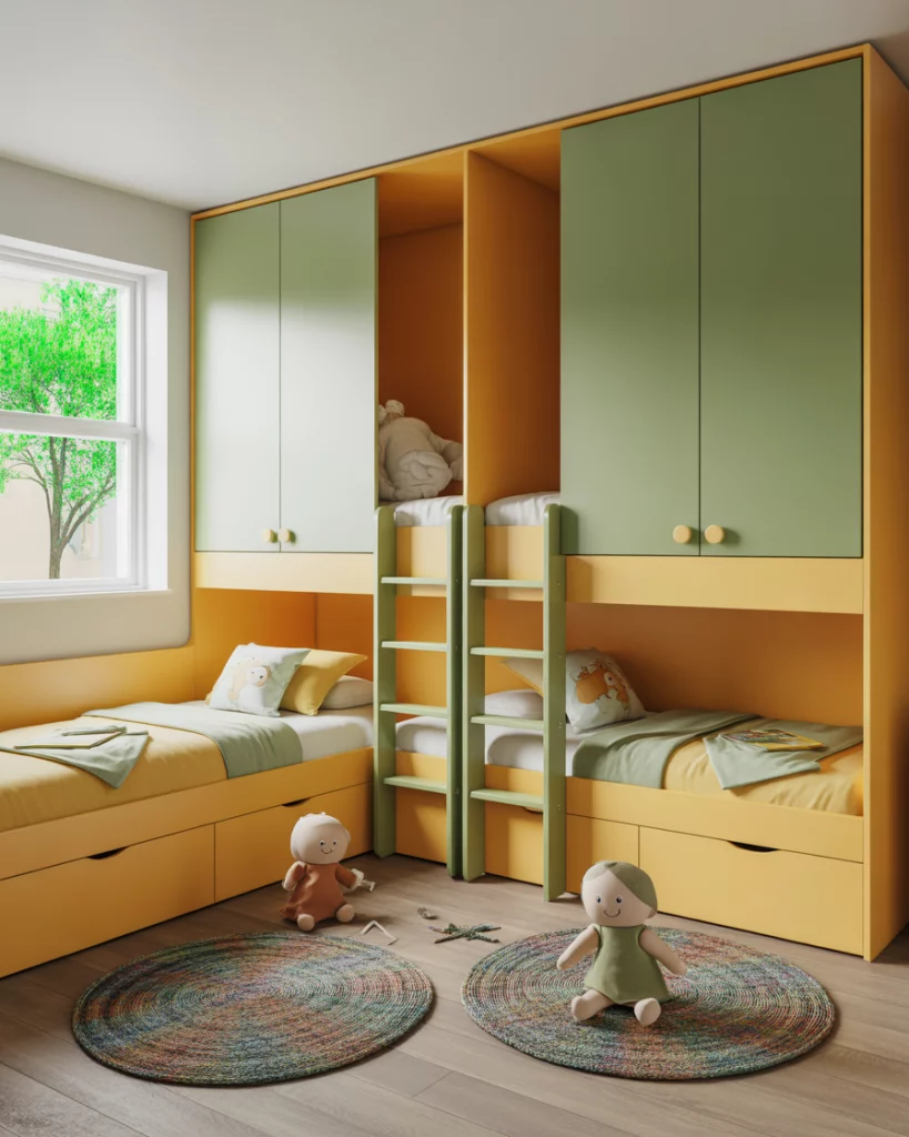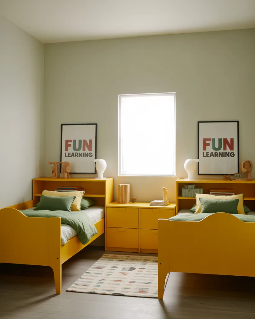 Many families need to create a shared boy and girl room, and 2026 sees more luxury options. Custom furniture like lofted bunk beds with integrated desks give both kids privacy. Yellow and green palettes strike balance—bright but gender-neutral. Parents appreciate how a multi-functional layout transforms a small room into a stylish yet fun space, while children enjoy having clearly defined corners. Ikea hacks still fit beautifully here.
