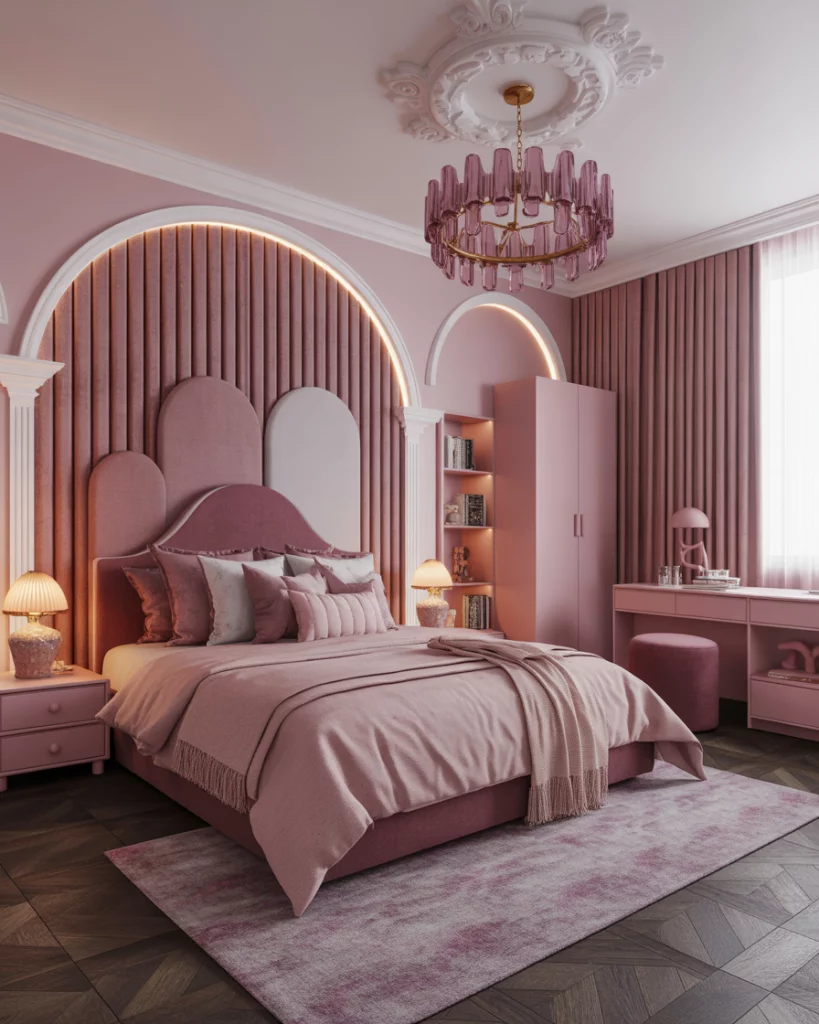 A pink bedroom is timeless for girls children, but in 2026 it takes a luxury turn with velvet textures, purple accents, and soft lighting. Think chic chandeliers, elegant storage, and playful touches like a dress-up corner. Parents often recall their own childhood rooms, making this both nostalgic and modern. For girls toddler, add plush rugs and safe, rounded furniture. The look works best in small-to-medium spaces where details shine.