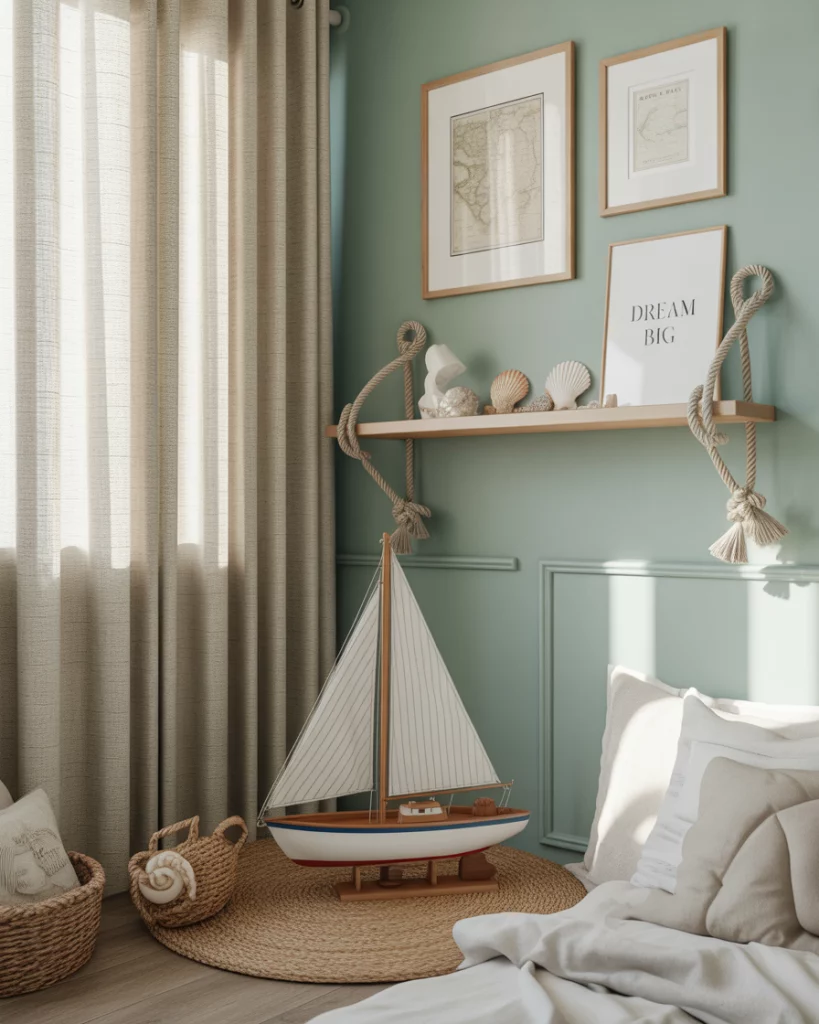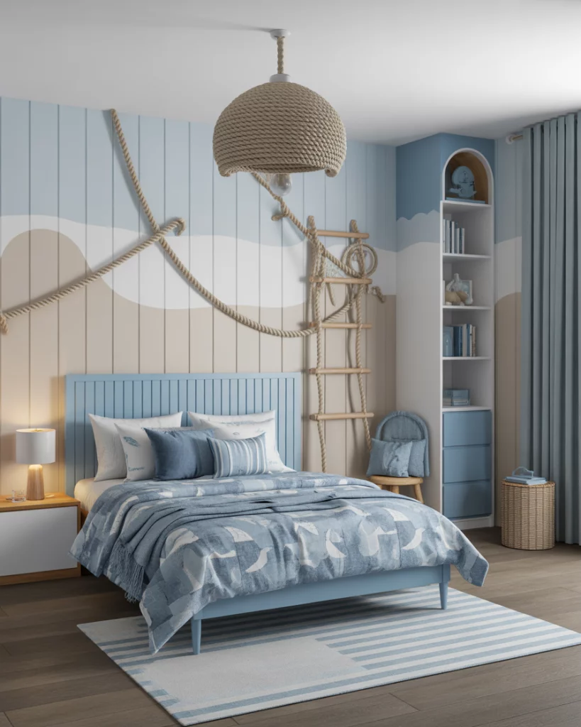For families near the ocean—or those who dream of it—a blue coastal-themed kids room is a timeless 2026 choice. Soft blues paired with neutral sands and touches of yellow create a breezy, relaxed vibe. It works perfectly for boys theme rooms, but can also be adapted for girls children with nautical accents. Add fun décor like rope shelves or boat-shaped beds, and you’ve got a mini seaside retreat at home.