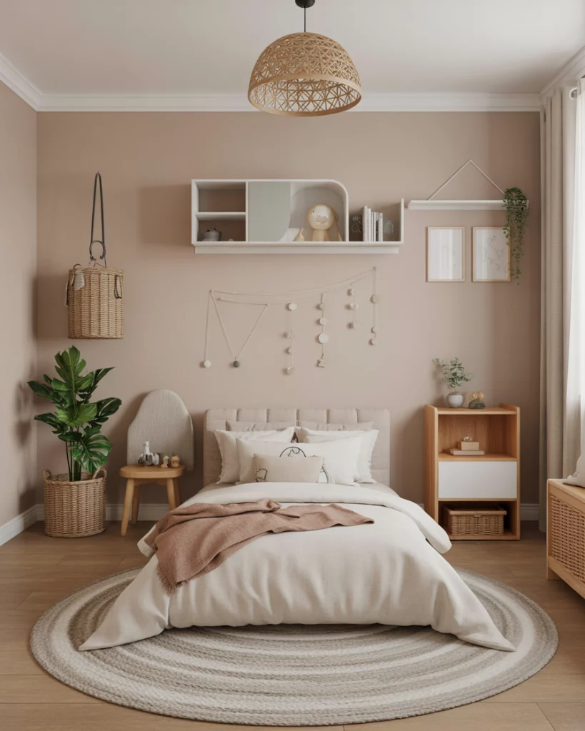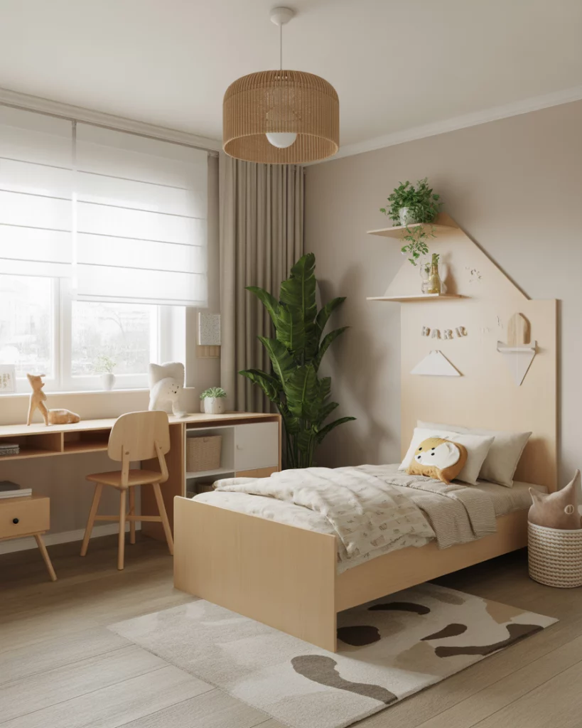 Not every parent wants bright pink or bold blue—many choose a neutral palette for a calm, timeless feel. This works well for unisex designs or for boys single bed layouts where balance matters. Add touches of green plants, woven baskets, and simple cute textiles to create warmth. This idea appeals to design-savvy parents who love Ikea-style Scandinavian vibes but want something that grows with the child without constant redesign.