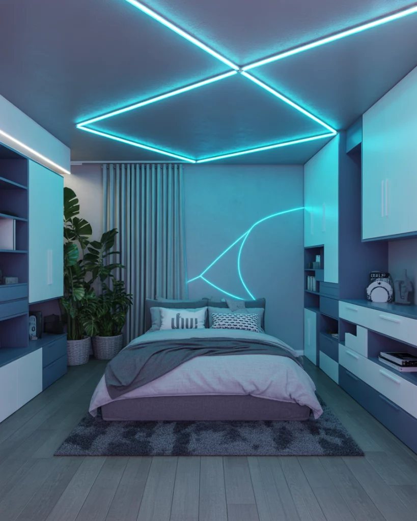 For fans of the game Stray, bedrooms in 2026 echo its futuristic yet cozy world. Think neon blue lights, industrial walls softened with cute accessories, and smart tech corners. This works especially well for boys theme rooms or older kids who want something unique. Add green plants and neutral furniture to balance the cyberpunk edge. Parents like how it mixes fun with a forward-thinking style.