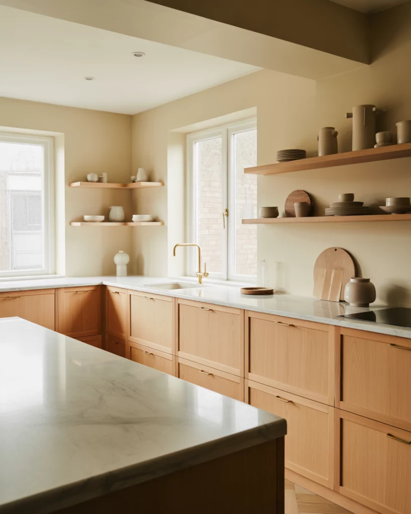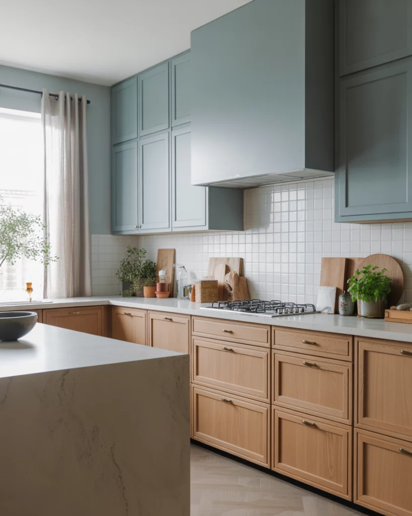 Scandi-inspired kitchens remain popular for those who value calm, airy scheme ideas grounded in soft neutral tones. These palette directions work well in small or minimalist homes and pair seamlessly with wood, stone, and matte finishes. They also blend beautifully with stainless steel, offering simple yet the best design-forward combination ideas.