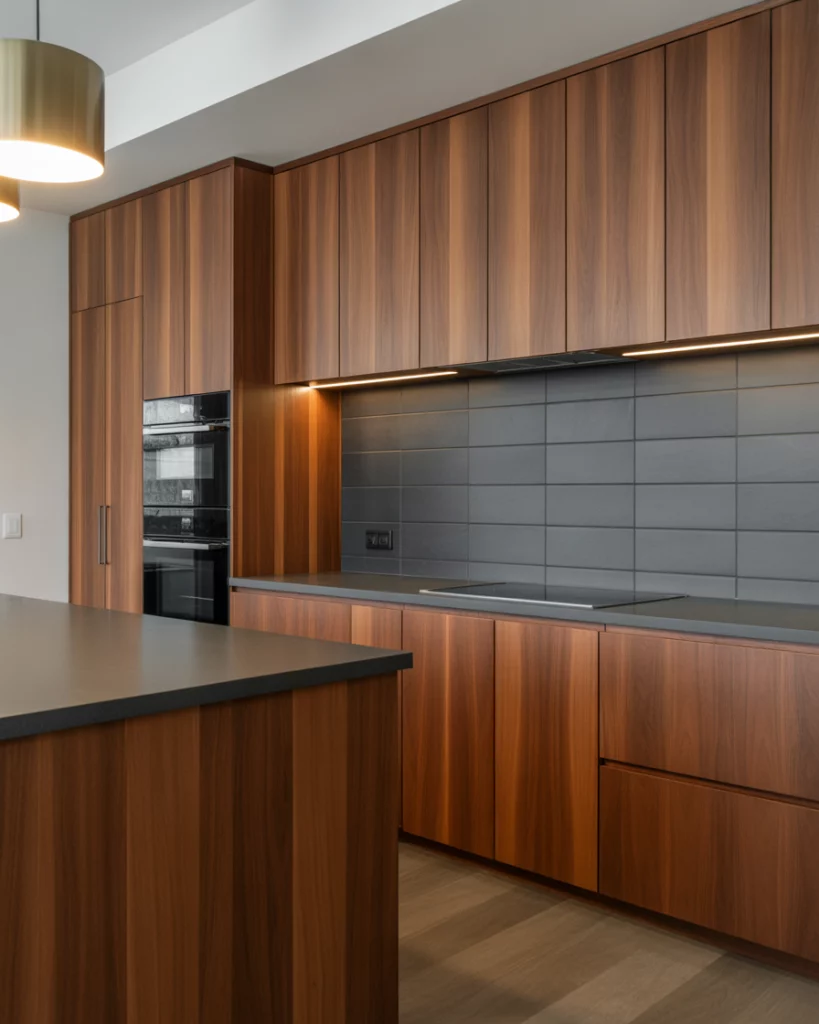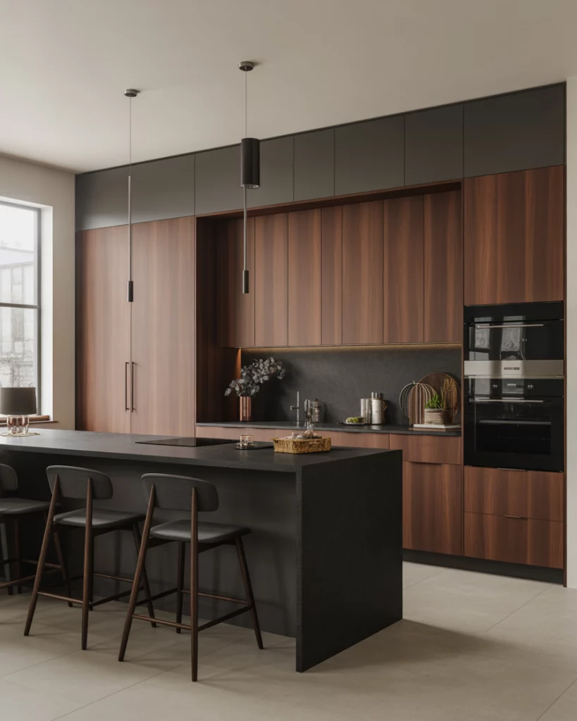 Charcoal tones paired with walnut create rich, layered schemes perfect for contemporary homes. This combination brings depth without feeling harsh, especially when softened with linen textures or brushed metal. Many designers cite it as one of the best emerging trends, offering refined contrast and versatile palette ideas for both small and large kitchens.