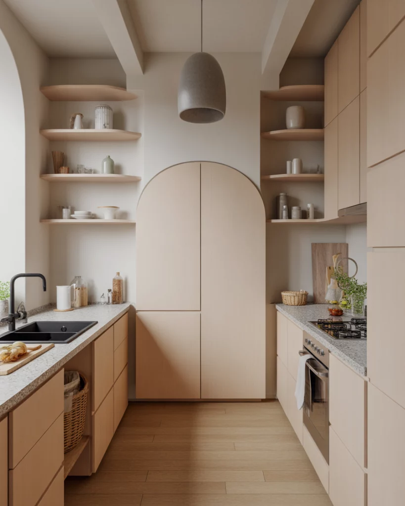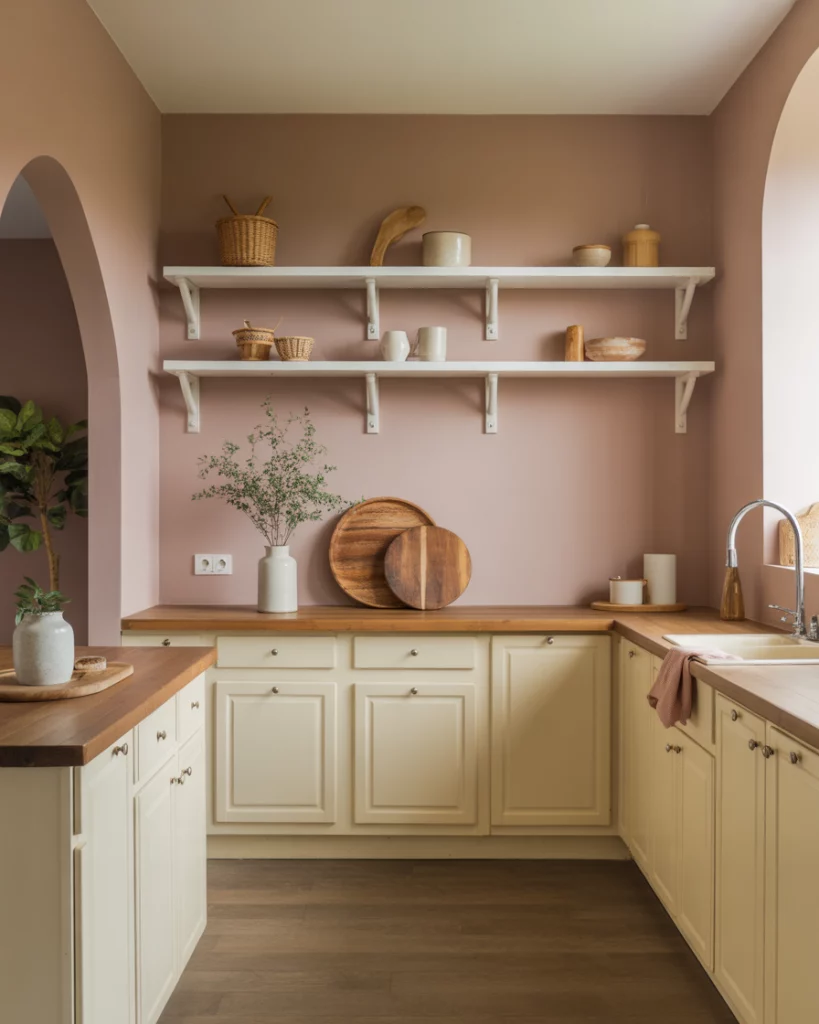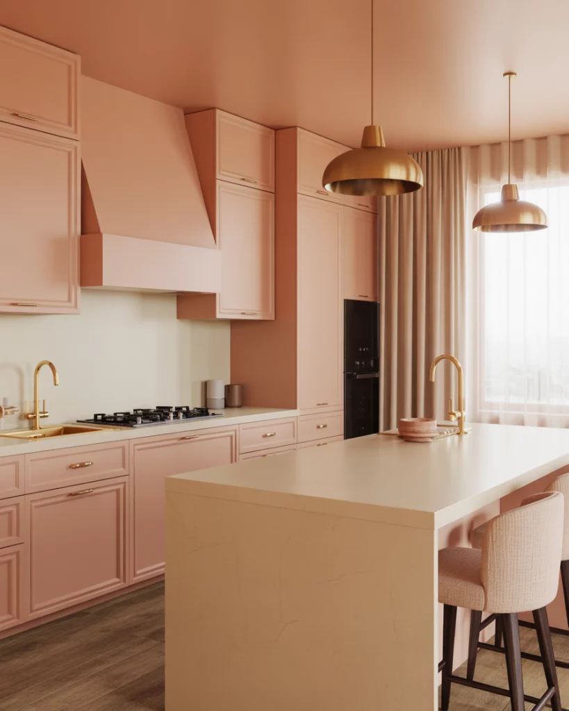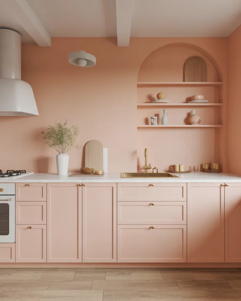 Peach-colored designs look amazing when chosen as the most dominant piece in the house, as opposed to the gray designs that look natural, as most people seek in the year 2026. These designs look amazing in small houses where less can be more. These colors are also excellent as designs for walls, as well as painted cabinetry, to create an attractive softness that lacks weight. They also produce attractive combination designs for white oak or brass, making them a popular choice for casual family kitchen designs.