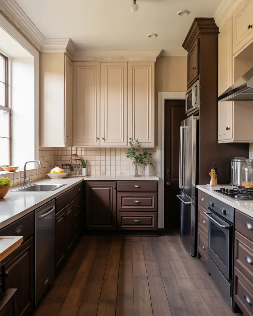 The espresso-and-cream duo continues to climb 2026 trends lists because it offers timeless elegance. These schemes paint ideas featuring dark wood or deep brown cabinetry balanced by creamy walls—ideal palette choices for those craving sophistication. Homeowners appreciate this combination for its hotel-like coziness and durability in busy kitchens.