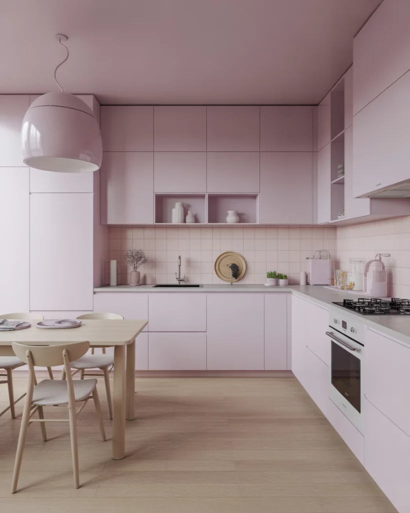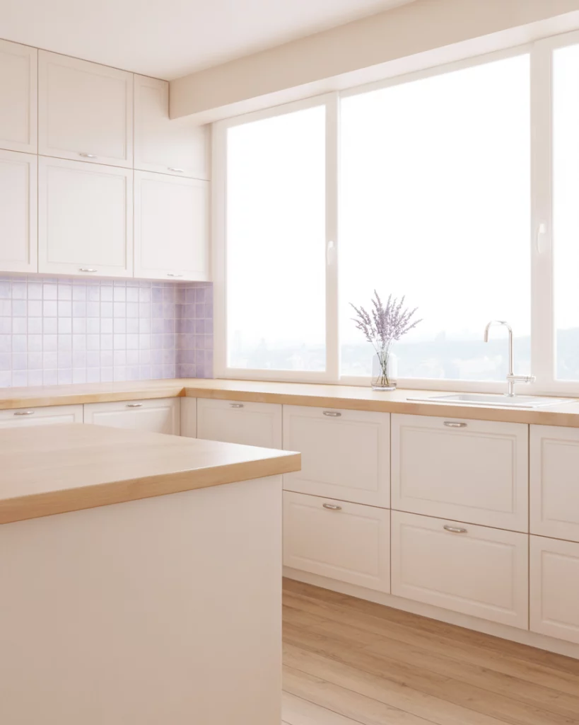 Light lavender has emerged unexpectedly as a gentle, modern twist in minimalist schemes. When paired with soft whites or light birch, it creates uplifted, serene palette ideas that feel fresh for 2026. Lavender works best as an accent—on open shelving, small painted cabinets, or partial wall applications—to keep the look airy and calm.