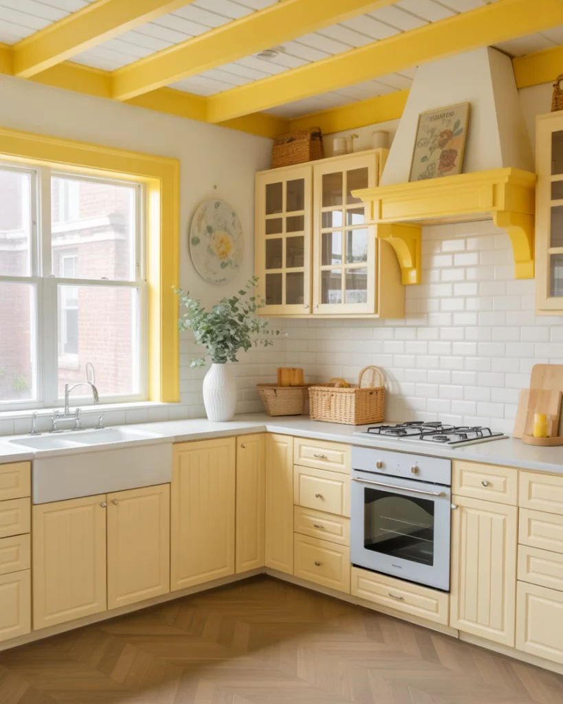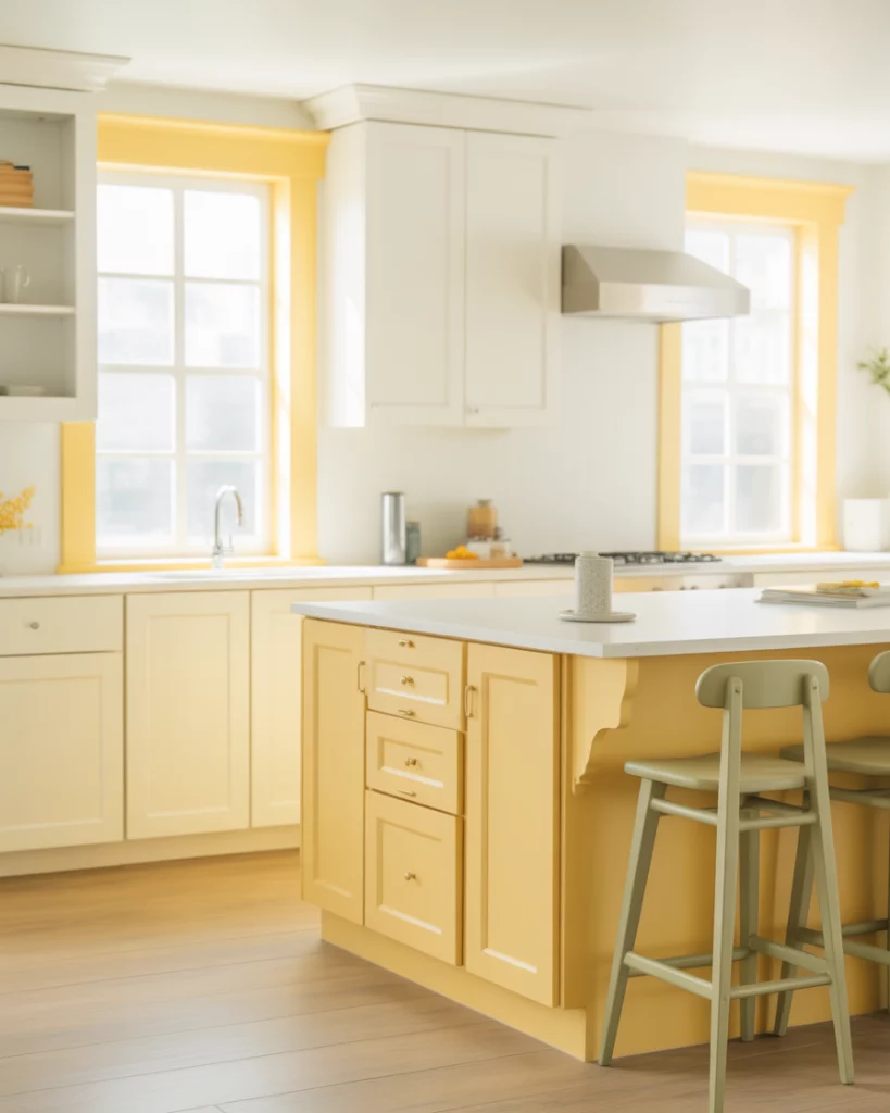 Many designers highlight yellow as a feel-good shade returning in 2026. It pairs effortlessly with neutral elements and modern combos, creating schemes and paint solutions that brighten compact kitchens. Homeowners use it as an accent on painted cabinets, bar stools, or window trim, bringing optimism without overwhelming the room.