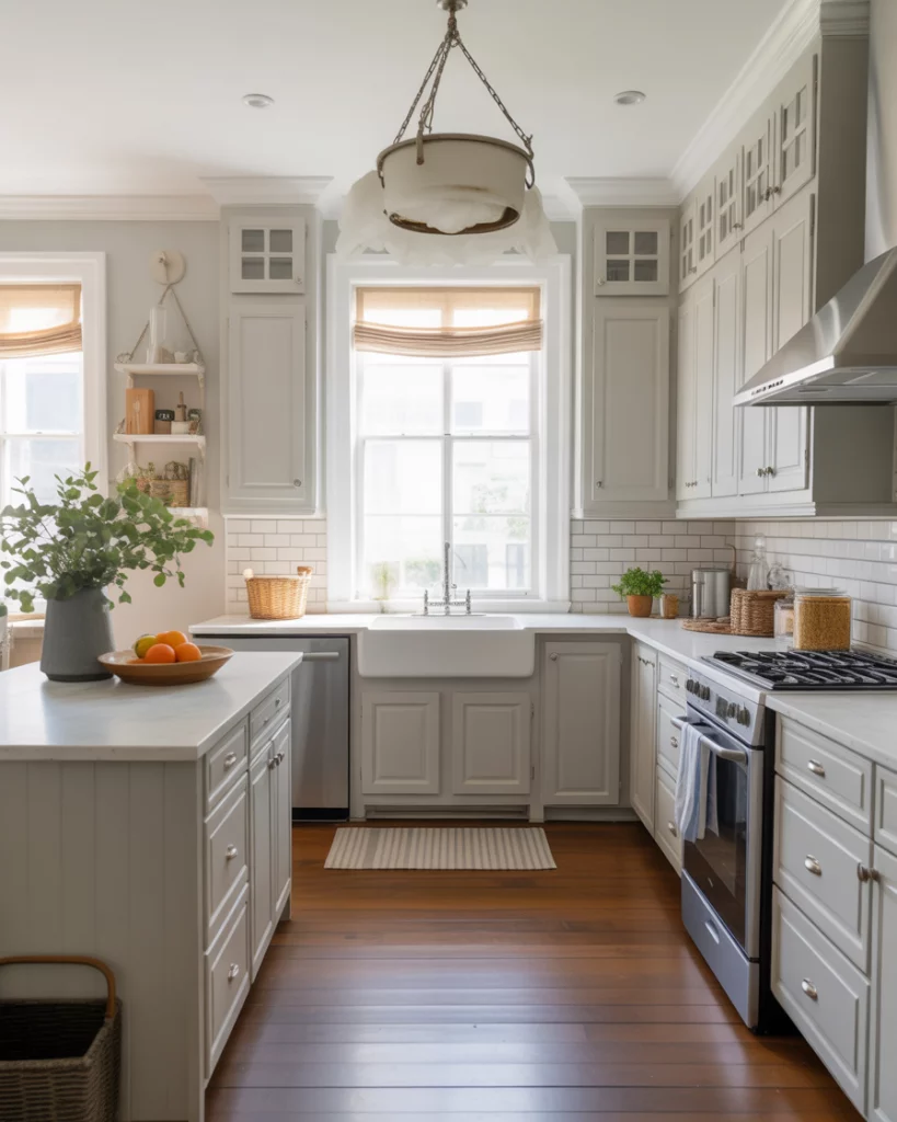 Mist gray offers a breezy, near-coastal feel perfect for homeowners who prefer understated elegance. This shade works effortlessly with white cabinets, rattan accents, and cool metals, creating easygoing scheme ideas that stay relevant across trends. It’s a go-to choice for kitchens needing lightness without losing personality or warmth.