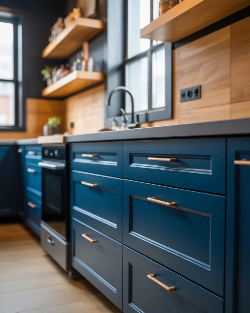 Ink blue adds confident depth to 2026 kitchen paint schemes, delivering a bold yet refined look. It works especially well on painted cabinets or accent islands, pairing seamlessly with brushed nickel, marble, or pale woods. This combination offers dramatic palette ideas without overwhelming the space—ideal for modern layouts seeking personality.